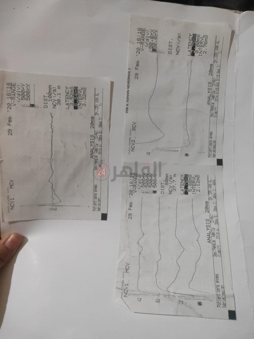 وتابعت: بعد شهر لاحظت تراجعا شديدا في حالتها فذهبت لطبيب مخ وأعصاب، وتمكن من تشخيص حالتها تشخيص مبدأي من الفحص الأول، وطلب مني إجراء رسم عضلات للطفلة، ووضح فيه إصابة في الأعصاب الطرفية أي اشتباه ضمور عضلات شوكي، فطلب تحاليل ونتيجتها أثبتت إصابة ابنتي بالمرض بنسبة 100%.