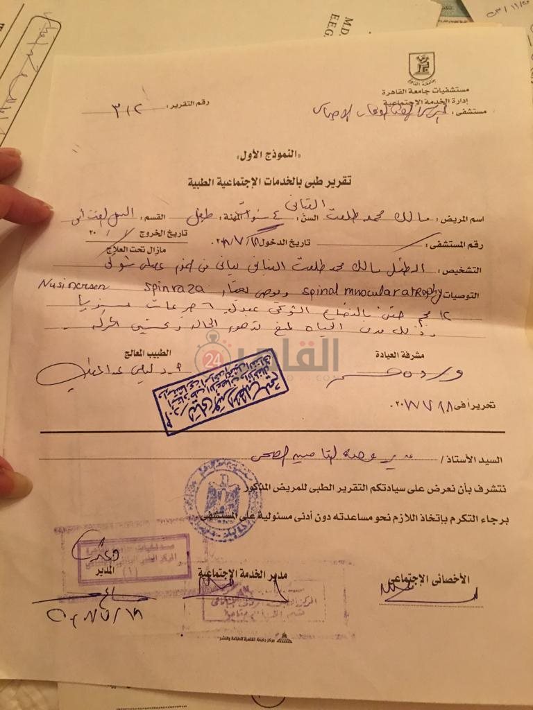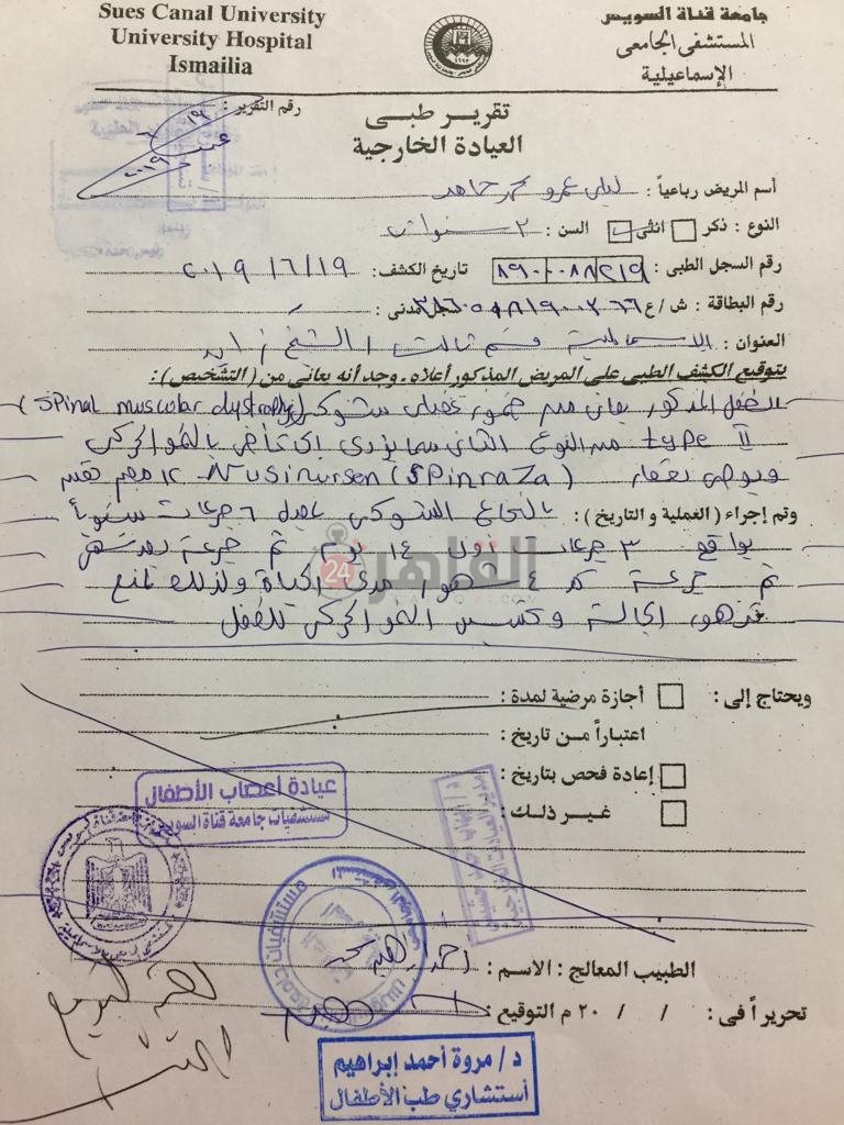 وأوضحت زويد، لـ القاهرة 24: بدأت بالعلاج الطبيعي لها، واستمريت حوالي سنة مع نفسي بحاول في علاجها وأقرأ عن الموضوع، لحد ما لقيت مجموعة على فيسبوك تجمع المصابين بنفس المرض، وبدأنا نفكر كلنا ونتحرك في اتخاذ إجراءات قانونية لعلاج أطفالنا، وبإعلان المبادرة من الرئيس دخلنا فيها، ولكننا حتى الآن لم نتلقى علاج وبنتي حالتها بتسوء ومحتاجة للعلاج في أسرع وقت.
