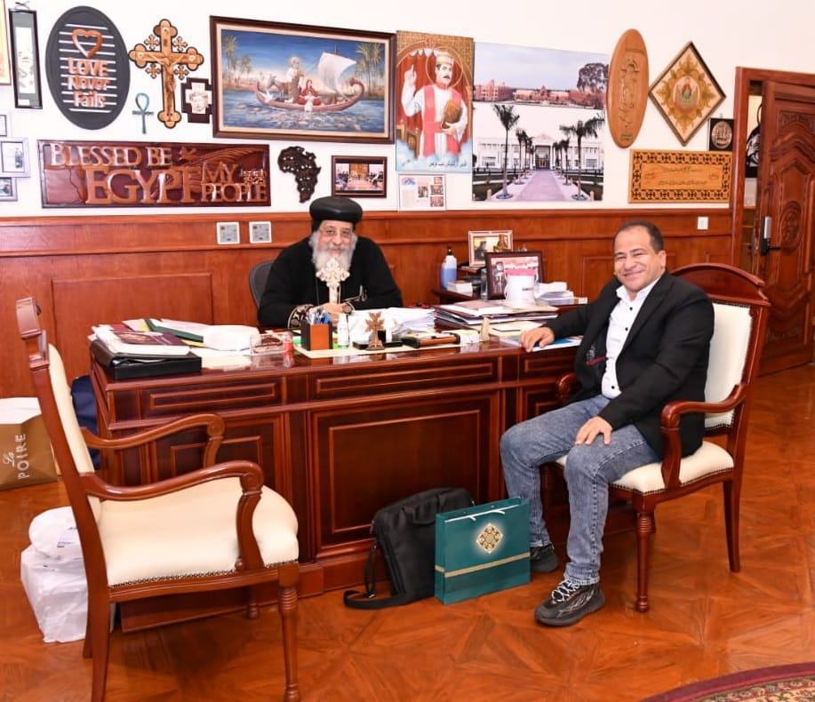 وعرض الدكتور هشام رسالته على قداسة البابا تواضروس الثاني، وهنأ البابا تواضروس الثاني الباحث لتميزه في رسالته لنيل درجة الدكتوراه، لما تحويه من أسرار هامة جدا عن الإله ست في العصرين اليوناني والروماني.