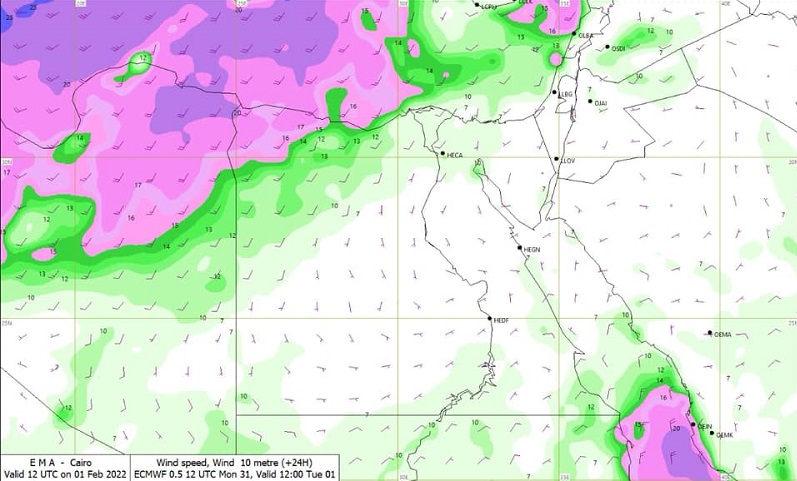 درجات الحرارة اليوم الثلاثاء 1-2-2022 في مصر