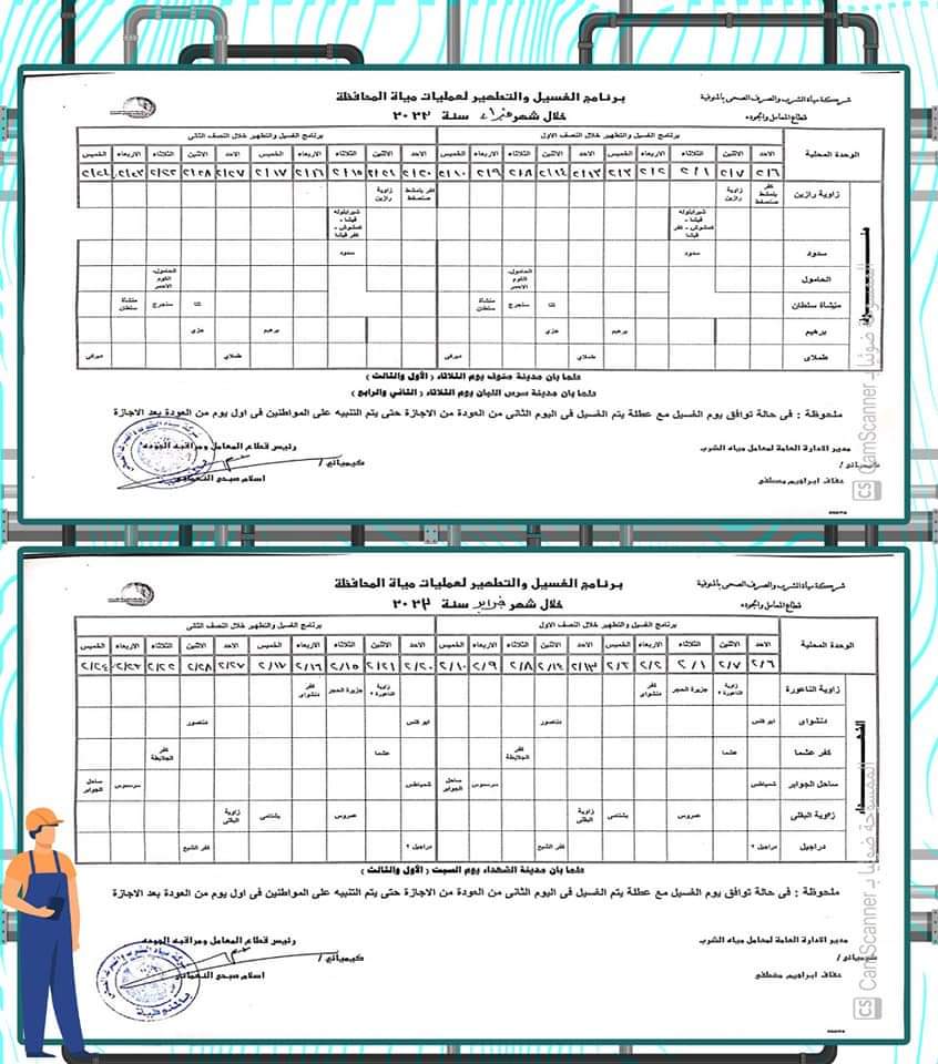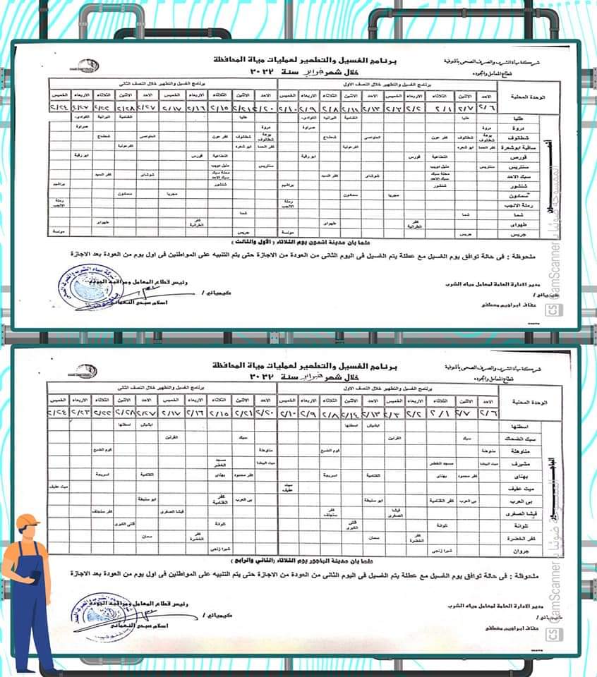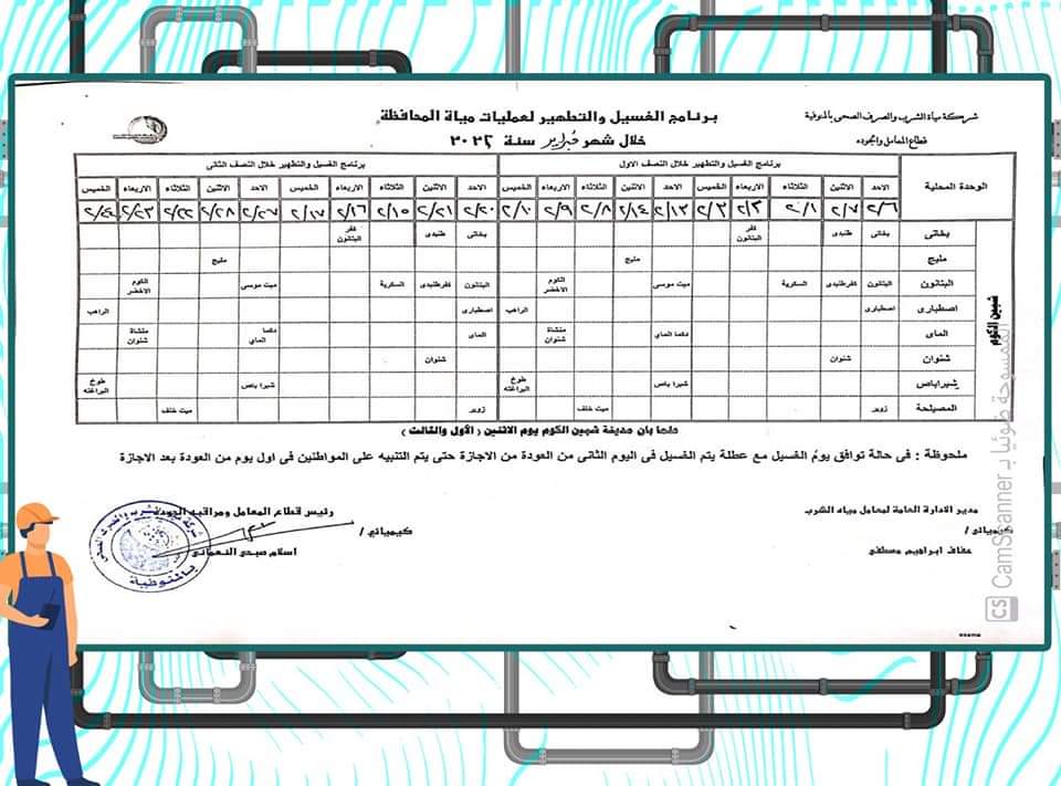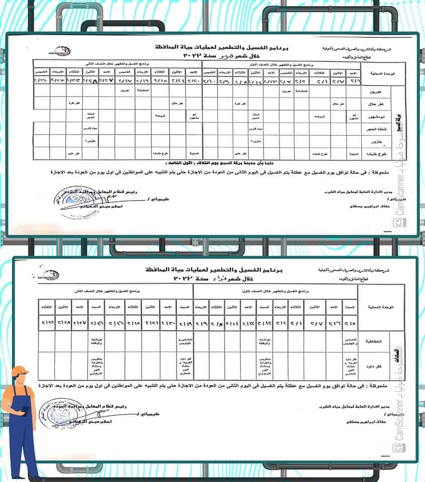 أعلن محمد نجيب صالح، رئيس شركة المياه بالمنوفية، عن خطة غسل شبكات المياه بكافة مناطق المحافظة وفقًا للمناطق المحددة بجدول الغسل الدوري للشبكات خلال شهر فبراير 2022 م، والتي يتم فيها انقطاع الخدمة لعدة ساعات، لتحسين جودة المياه، ووصول مياه مطابقة للمواصفات للمواطنين في المنازل.
