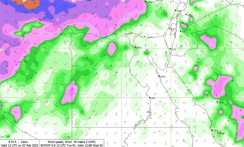 حالة الطقس اليوم الأربعاء 2-2-2022 في مصر.. نشاط رياح وتحسن فى درجات الحرارة