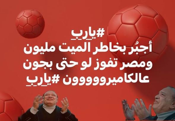 وأكد المخرج عمرو عرفة دعمه لـ منتخب مصر قبل مباراة الكاميرون، عبر حسابه الشخصي بموقع التغريدات القصيرة تويتر، وكتب تغريدة جاء فيها: لا زمالك ولا أهلي أنا مصر بتندهلي.. يا رب الفوز لمصر.
