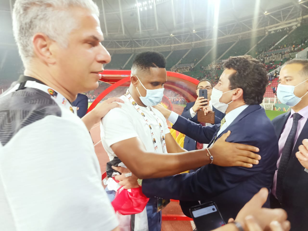 وتوجه صامويل إيتو عقب نهاية المباراة إلى أعضاء الجهاز الفني لمنتخب مصر داخل أرض الملعب وقدم لهم التهنئة على الفوز والتأهل إلى نهائي أمم إفريقيا.