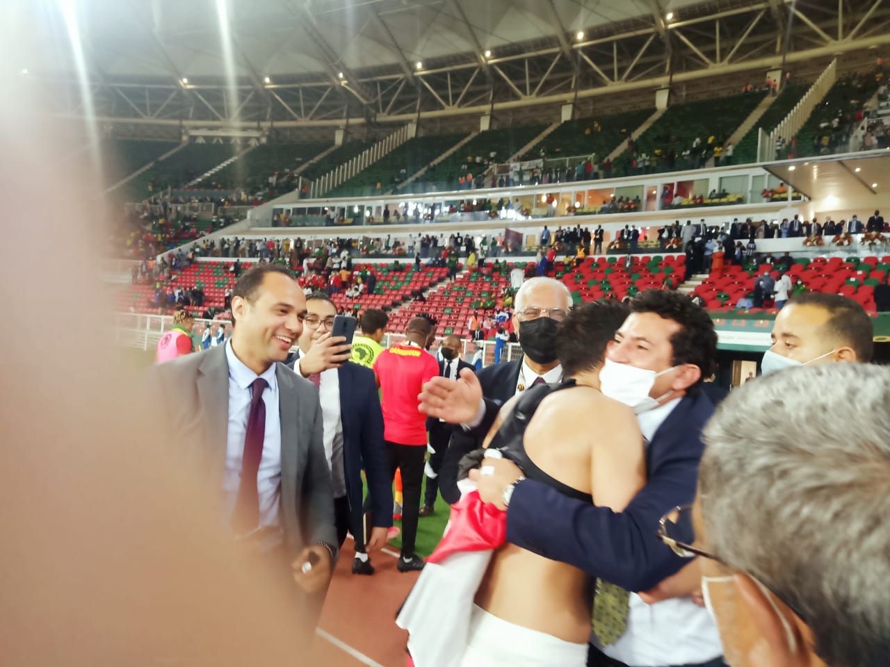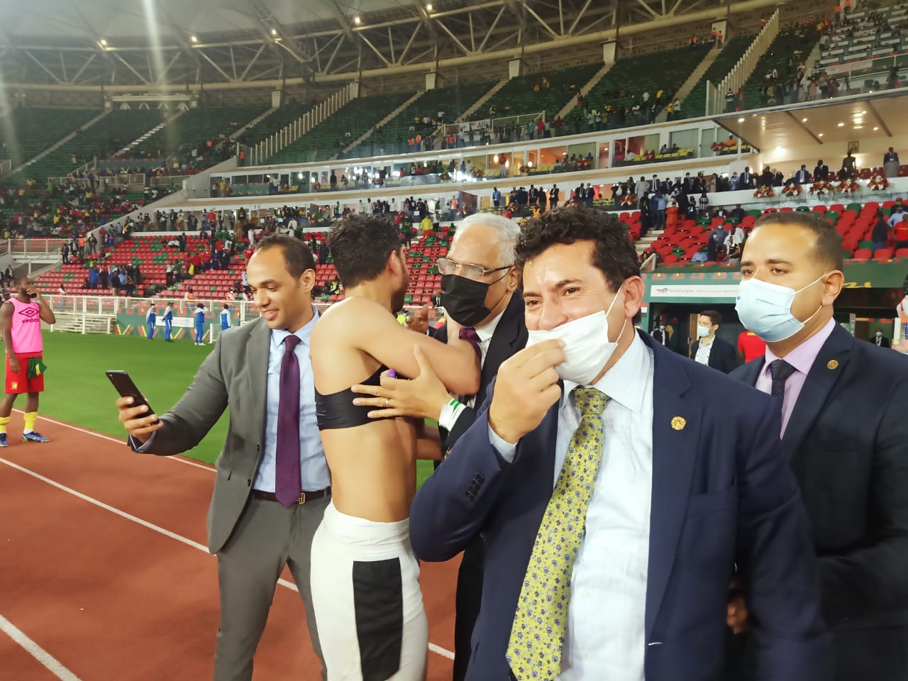 إيتو يهنئ جهاز الفراعنة.. وأشرف صبحي يحتفل مع اللاعبين بالتأهل لنهائي كأس أمم إفريقيا | صور