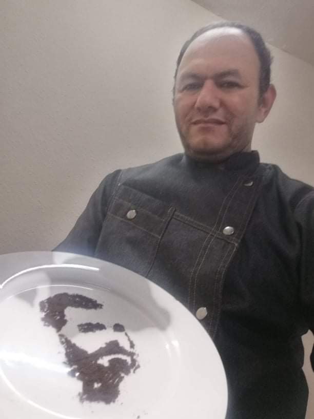 واستخدم شيف المشاهير؛ فرشاة وقهوة مطحونة وطبق أبيض، لرسم محمد أبو جبل، عقب أداءه المميز خلال بطولة كأس الأمم الإفريقية المقامة بالكاميرون.