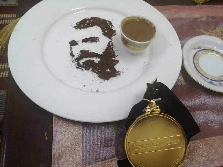 ورسم خالد؛ الذي يعمل حاليًا بالمملكة العربية السعودية، صورة حارس منتخبنا الوطني محمد أبو جبل، مستخدمًا القهوة، تقديرا لمجهوده والدور الذي قام به خلال المباراة، وكذلك تصديه لركلات الترجيح؛ التي صعدت بمنتخبنا الوطني إلى المباراة النهائية.