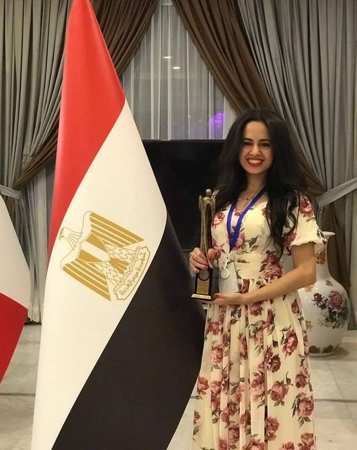 وكشفت أنه تم سابقا تكريمها دوليًا، بمهرجان بغداد، لحصولها على جائزة تمثل اسم مصر.