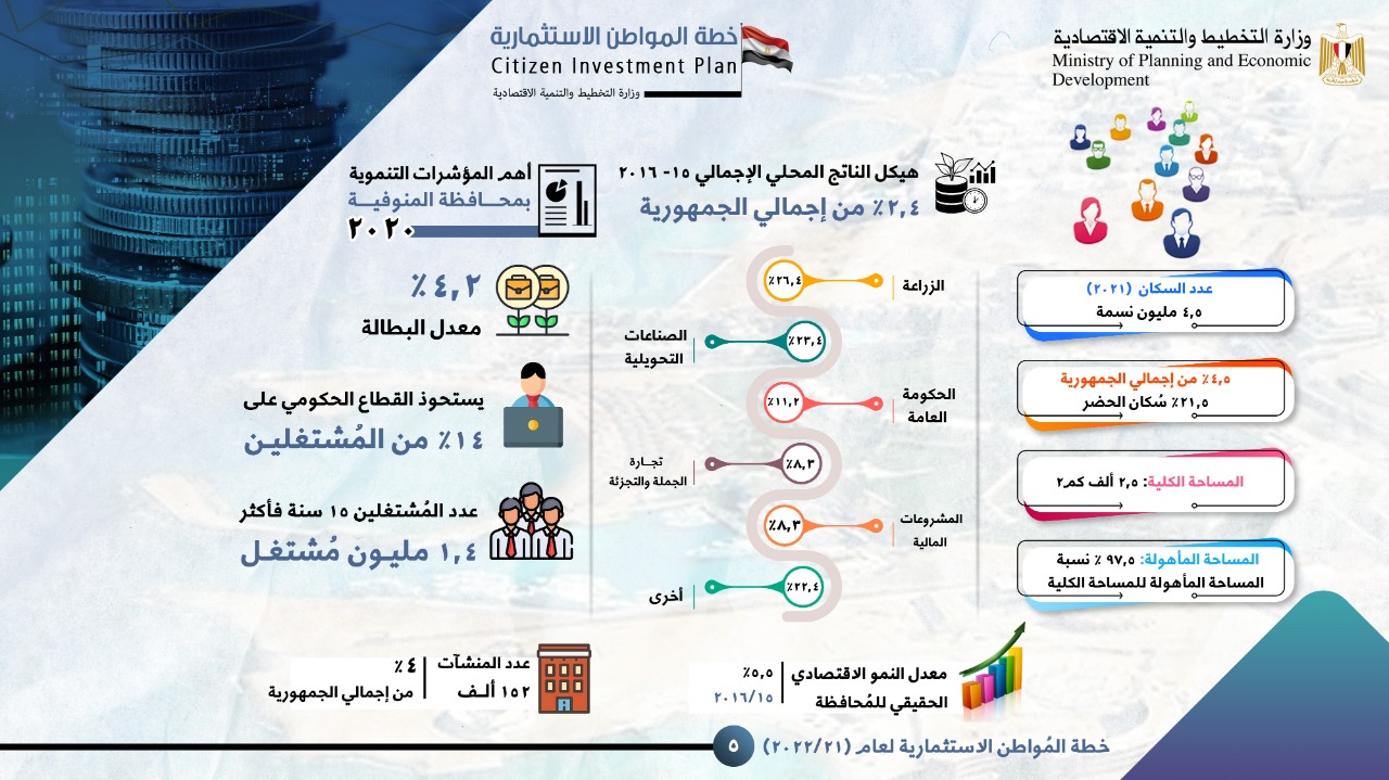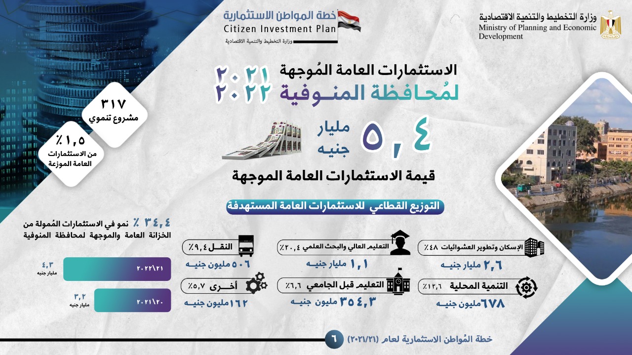 التخطيط: 5.4 مليار جنيه لتنفيذ 317 مشروعًا تنمويًا بـ المنوفية |إنفوجراف