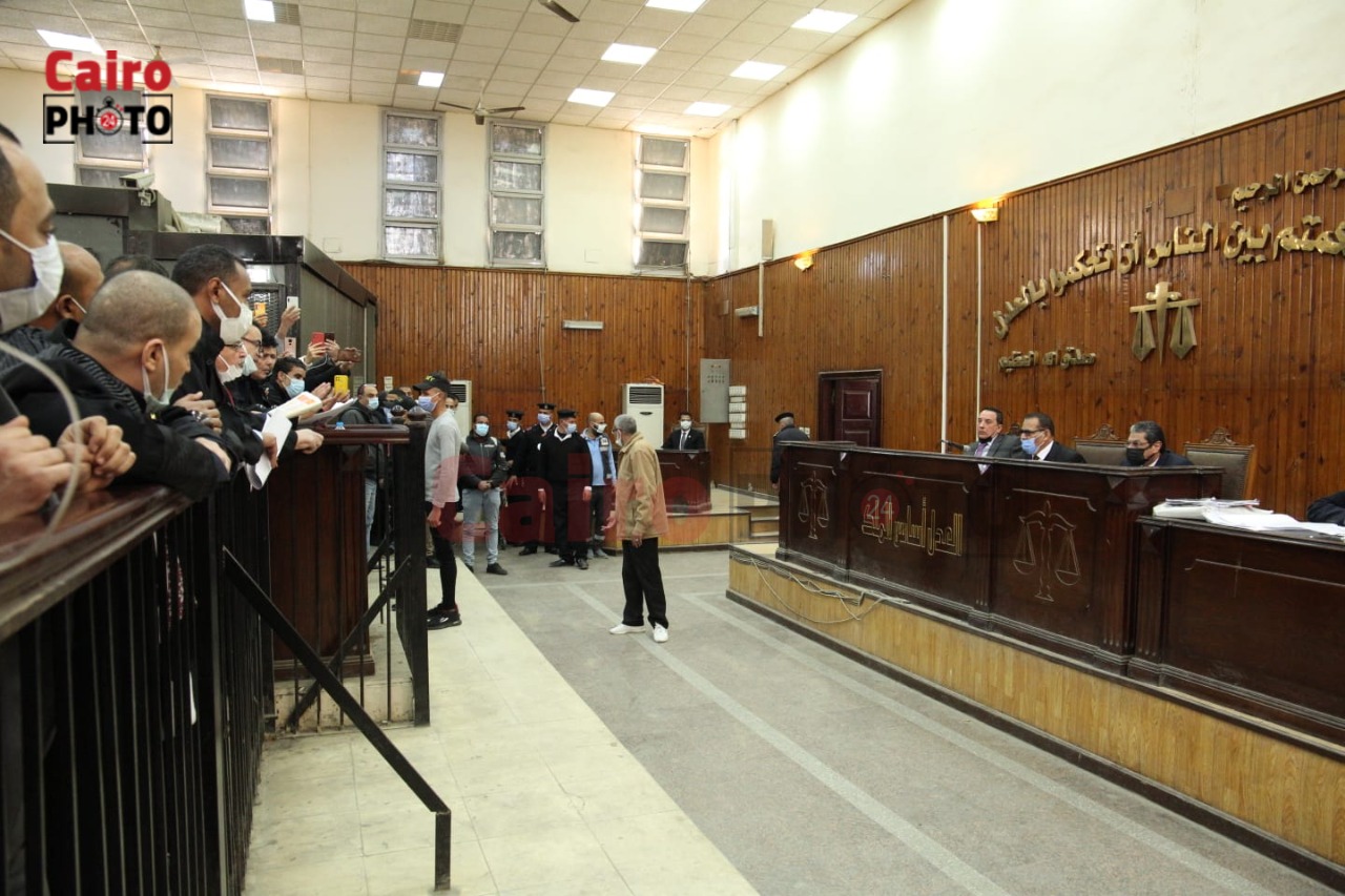 وشهدت الجلسة حضور كريم الهواري على نقالة طبية، كما حضرت شقيقة المتهم وأسرته وعدد كبير من دفاعه، كما ظهر أسر الضحايا.