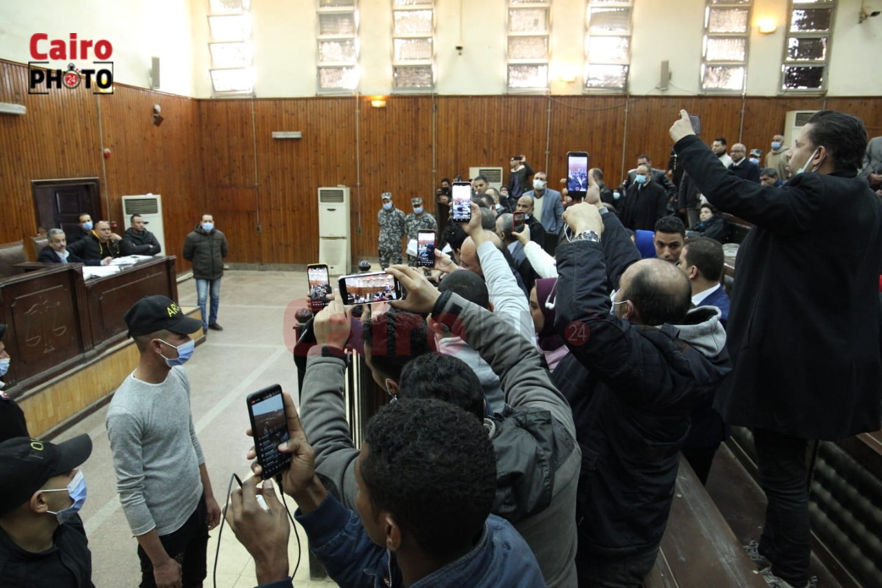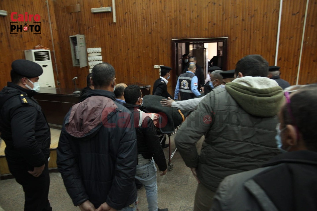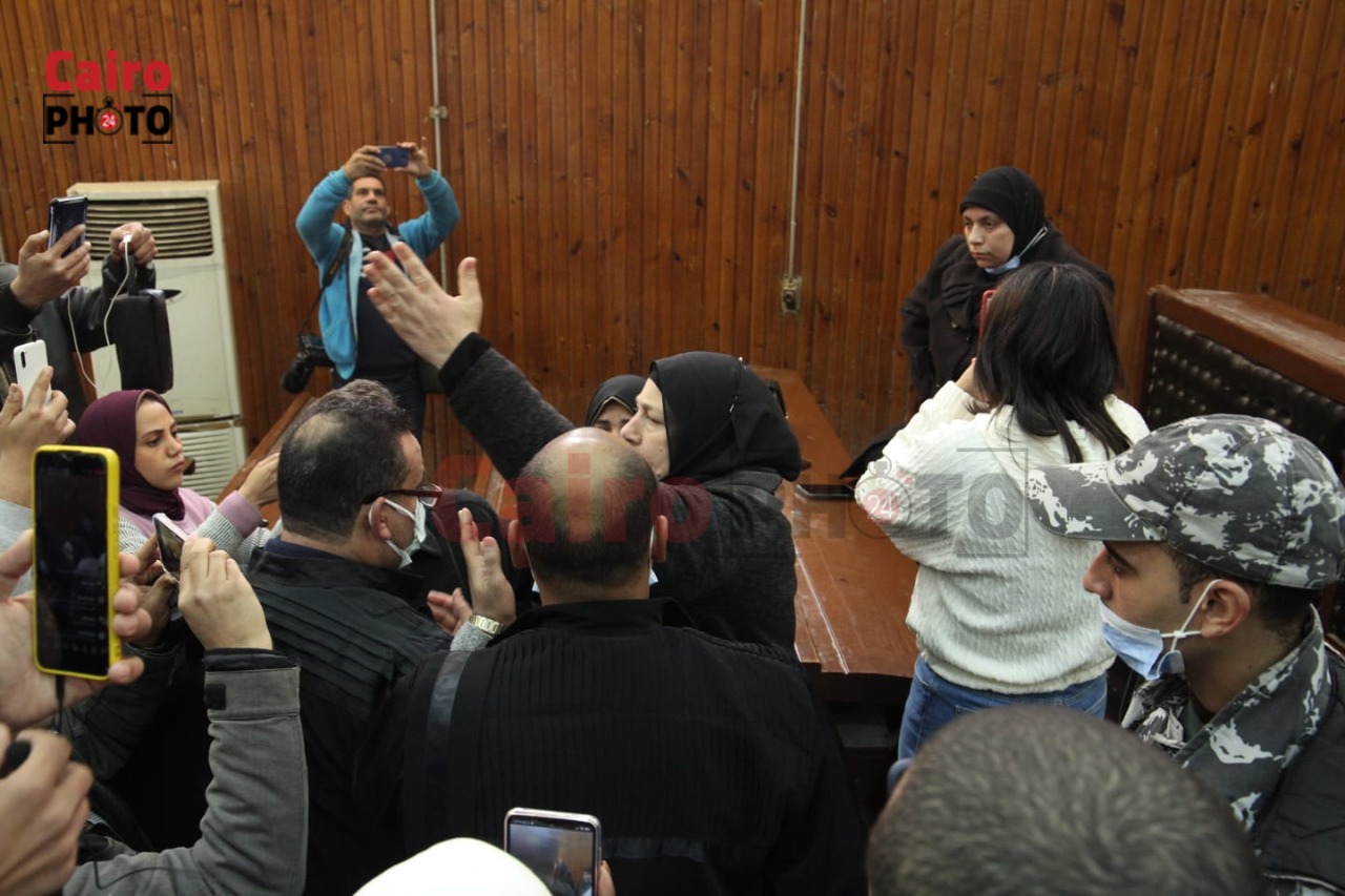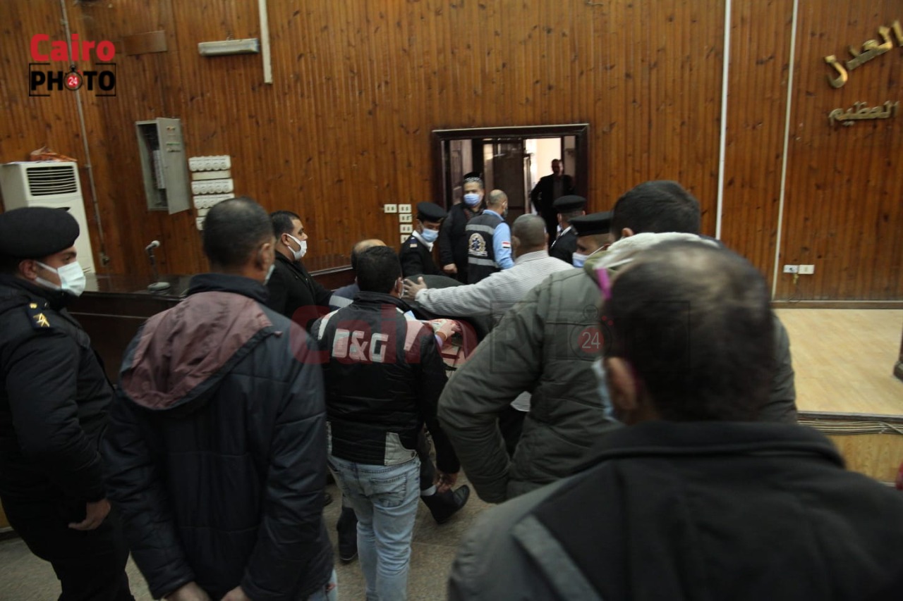 ووصل أهالي الضحايا يوسف محمد العباسي شعبان، وعمر حمدي خليل توفيق، وعبد الله محمد حسانين خلاف، وسعيد حسن شلبي المتولي، إلى المحكمة لحضور جلسة محاكمة كريم الهواري، المتهم الأول في قتل أبنائهم، وسط حالة من الحزن تظهر على وجوههم، وهم متشحون بالسواد.