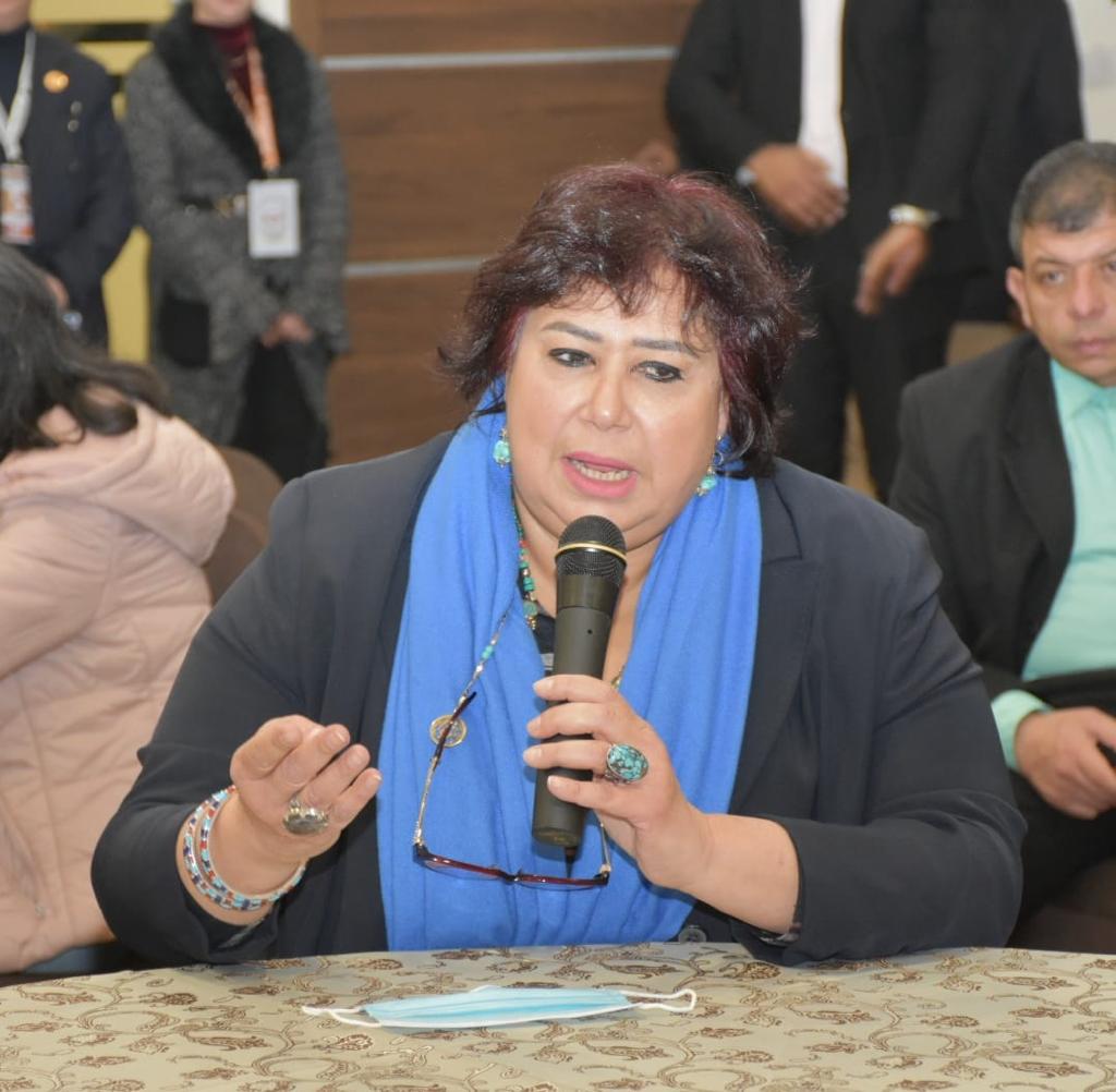 واستعرضت وزيرة الثقافة أهم الجهود لتفعيل هذه المناحي والمتمثلة في اطلاق مشروع المسارح المتنقلة الذى نفذ 347 نشاطا في 41 قرية من 9 محافظات من خلال 12 مسرحا متنقلا وسيتم الاعلان عن انضمام 8 أخري إلى الخدمة قريبا، لتساهم فى مكافحة التطرف الفكري وبناء الإنسان تعزيزًا للقيم الإيجابية، كما توالت اهتمامات الوزارة ضمن سلسلة اكتشاف ورعاية الموهوبين والنابغين والمبدعين إلى جانب مساعى تنمية الصناعات الثقافية وحماية وتعزيز التراث الثقافي وأوضحت مشاركة وزارة الثقافة في المبادرة الرئاسية حياة كريمة 2021 حيث تم تقديم 1000 فعالية فنية وفكرية وابداعية في 52 قرية ونجع وتوابعهم بـ 3 محافظات وضمن خطة المشاركة في المبادرة، تم تدشين اول نموذج من كشك كتابك بساحة دار الاوبرا والذى يتم تنفيذ 333 وحدة منه بالتعاون مع مجلس الوزراء ومؤسسة حياة كريمة ووزارة التنمية المحلية إلى جانب وزارات الداخلية، الدفاع، الشباب والرياضة، التضامن الاجتماعي، النقل وعدد من مؤسسات المجتمع المدني ويهدف إلى توفير مطبوعات وزارة الثقافة وإصدارات دور النشر الخاصة بعد اختيارها من قبل الهيئة بالتعاون مع اتحاد الناشرين المصرين لأبناء القرى بأسعار مخفضة، كما تم تنفيذ 400 ليلة عرض بمبادرة مسرح المواجهة والتجوال إلى كافة ربوع مصر خصوصا القرى والنجوع والمناطق الحدودية والأكثر احتياجا وقرى حياة كريمة حيث تم تقديم 400 ليلة عرض في280 قرية ونجع بـ 14 محافظة وغيرها من المبادرات التي لاقت استحسان الجمهور المصري.