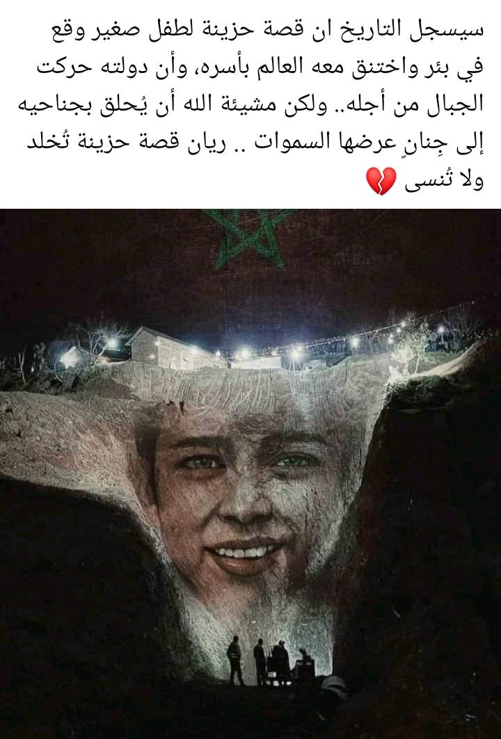 أعلنت السلطات المغربية منذ قليل وفاة الطفل المغربي ريان صاحب الـ5 سنوات، الذي سقط في بئر منذ يوم الثلاثاء الماضي، الأمر الذي جعل قلوب جميع الشعوب تنتفض.