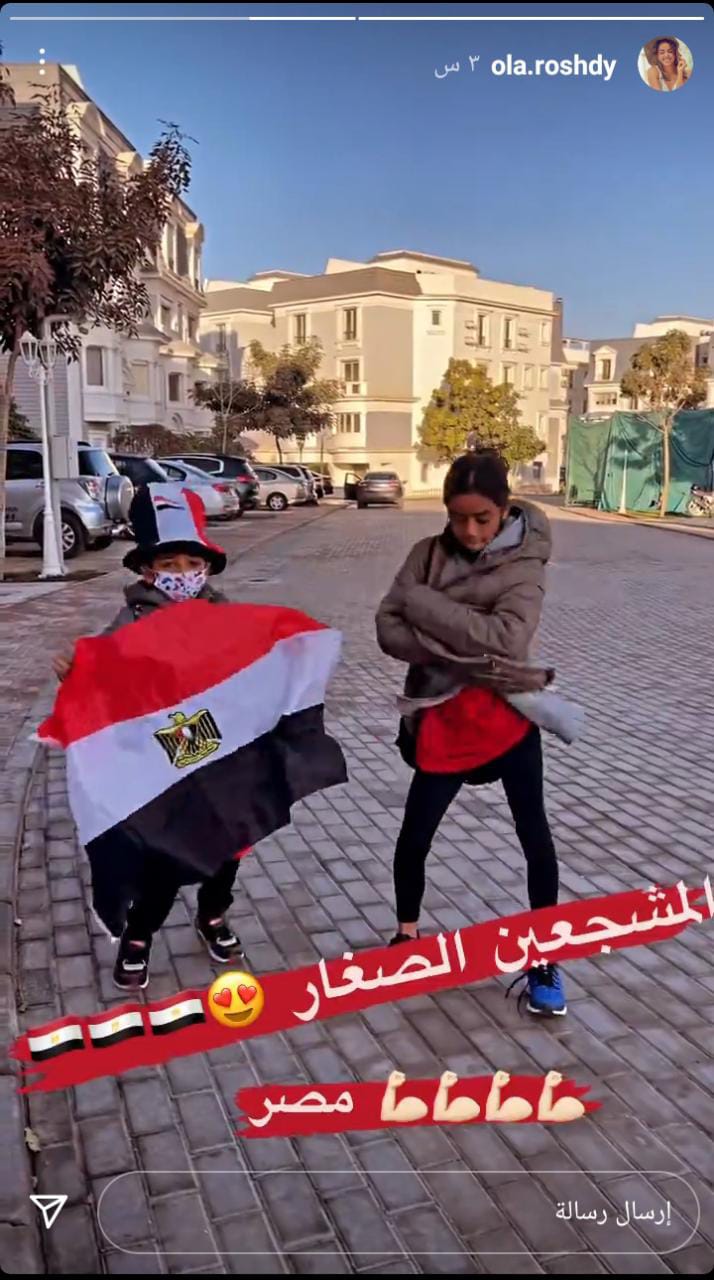 ودعمت علا رشدي منتخب مصر بنشر صورة لأولادها وهم يرتدون تيشرت منتخب مصر، على حسابها الشخصي بموقع تبادل الصور والفيديوهات انستجرام، معلقة: المشجعين الصغار، مصر.