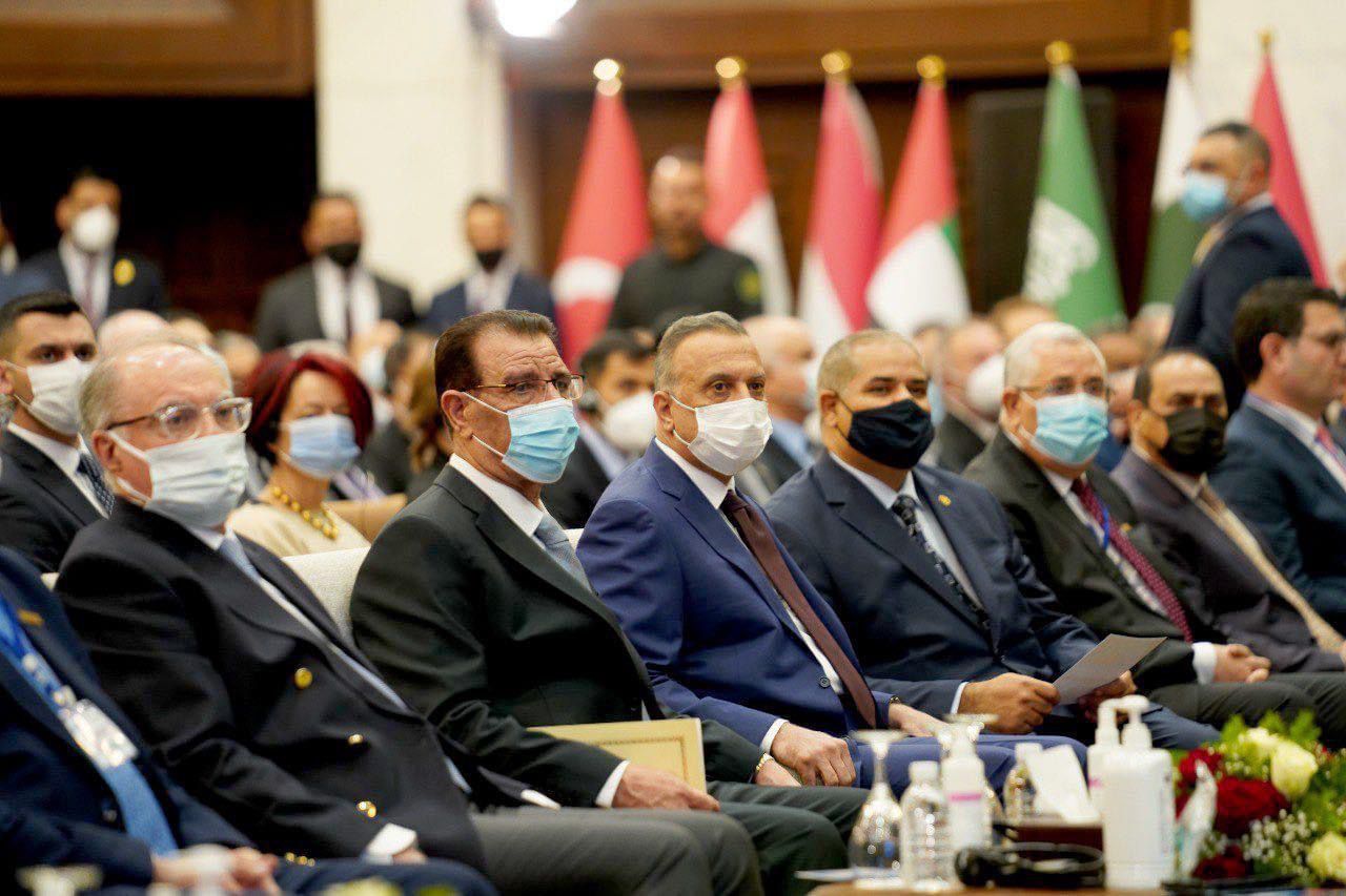 بدوره أكد رئيس الوزراء العراقي مصطفى الكاظمي في كلمته الافتتاحية على أن الحوار والتفكير المشترك والتعاون والشراكة ووضع استراتيجيات جديدة لمواجهة التحديات، خاصة التغير المناخي، هي من بين الأولويات لتحقيق الأهداف المشتركة، مشددًا على أنه لا يمكن لمجتمع أن ينمو على حساب مجتمع آخر.