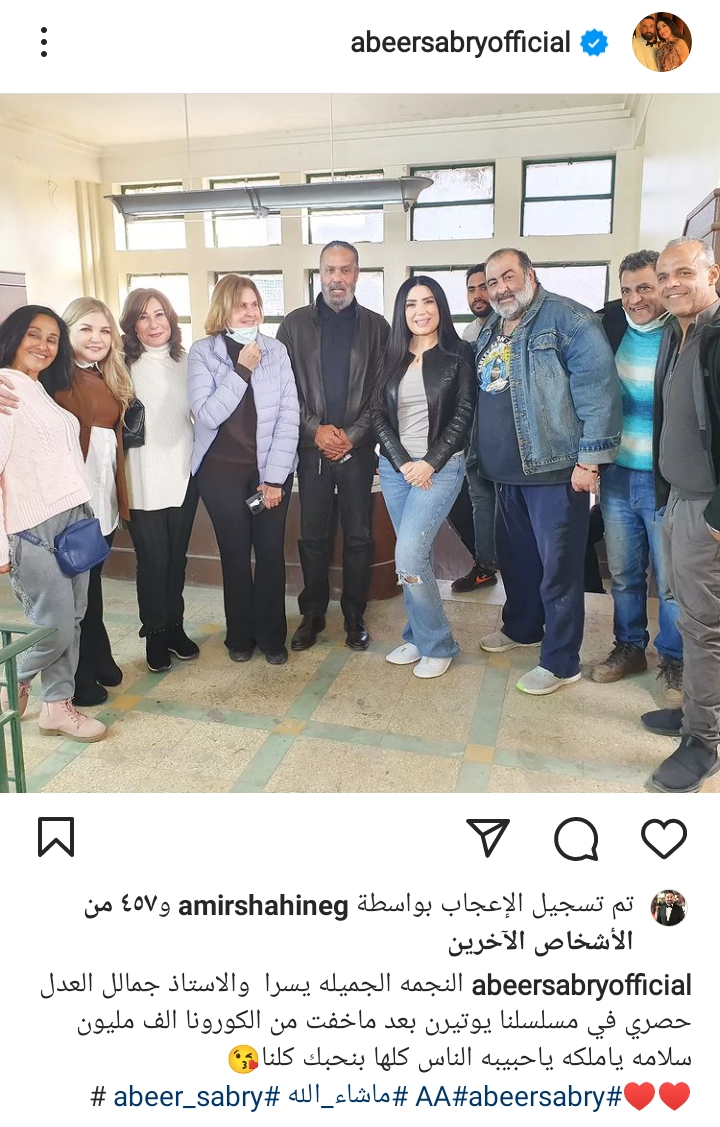 ونشرت عبير صبري الصورة، عبر حسابها الشخصي بموقع تبادل الصور والفيديوهات القصيرة إنستجرام، وعلقت عليها قائلة: النجمة الجميلة يسرا، والأستاذ جمال العدل، حصري في مسلسلنا يوتيرن بعد ما خفت من كورونا.. ألف مليون سلامة يا ملكة يا حبيبة الناس كلها بنحبك كلنا.