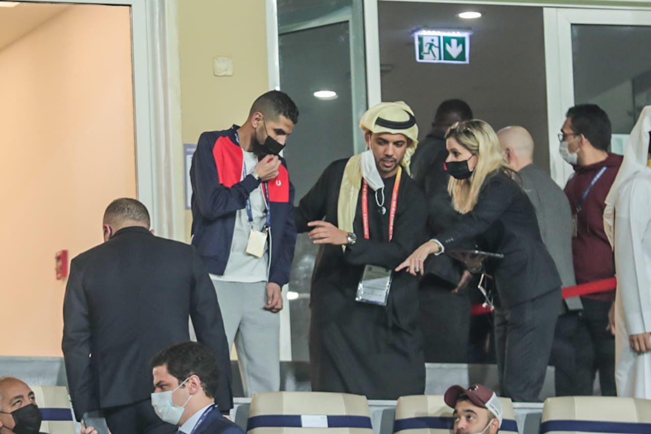 يوجد مؤمن زكريا، لاعب الفريق الأول لكرة القدم السابق بالنادي الأهلي، في مدرجات ملعب آل نهيان لدعم المارد الأحمر في مواجهة فريق بالميراس البرازيلي، في نصف نهائي كأس العالم للأندية 2021 بالإمارات.