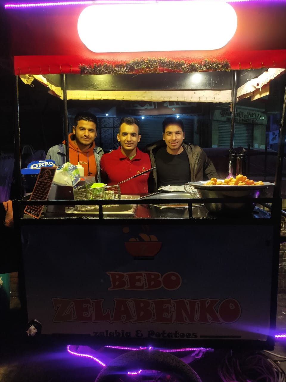 وواصل: حاليًا قررتٌ إقامة كرفان كبير، لعمل الزلابيا والبطاطس، بجانب مأكولات أخرى ومشروبات ساخنة وباردة، وذلك وفقًا لمواصفات الهيئة الغذائية.