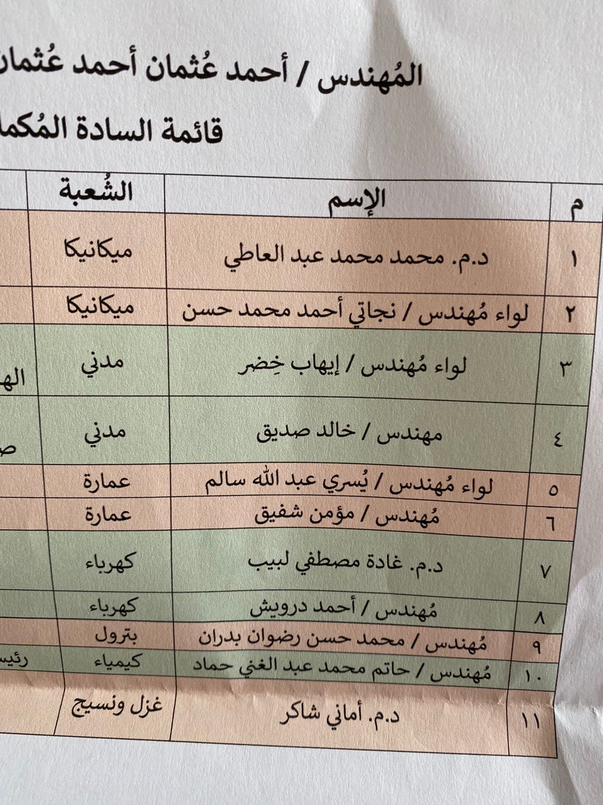ومن هذا المنطلق ننشر أسماء الأعضاء المكملين على قائمة المرشح على مقعد النقيب، المهندس أحمد عثمان أحمد عثمان، عضو مجلس النواب والتي تضمنت الأسماء التالية.