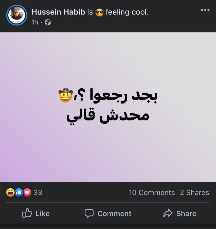 سخر حسين كامل، والد المطرب حسام حبيب، من الشائعات المتداولة على مواقع التواصل الاجتماعي المختلفة بشأن عودة نجله والفنانة شيرين عبد الوهاب من جديد بعد انفصالهما خلال الفترة الماضية.