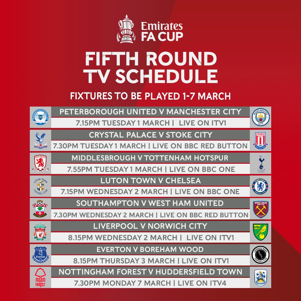بيتربوره يونايتد × مانشستر سيتي، ومن المقرر أن تقام المباراة يوم 2 مارس المقبل، في تمام الساعة العاشرة إلا ربع مساءً بتوقيت القاهرة.