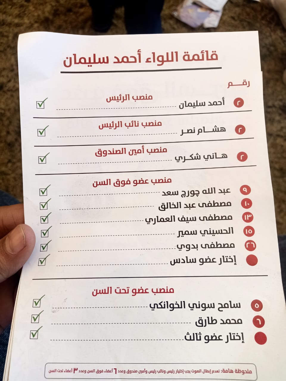 وأصبحت أوراق دعاية قائمة أحمد سليمان في يد أعضاء الجمعية العمومية، قبل التصويت على اختيار مجلس إدارة الزمالك المقبل، خلال العملية الانتخابية التي تنتهي اليوم بحلول السابعة مساءً.