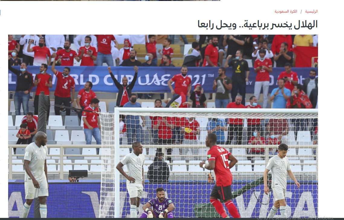 يرصد القاهرة 24، ردود أفعال الصحافة السعودية، وذلك بعد فوز الأهلي على نظيره فريق الهلال بنتيجة أربعة أهداف دون رد في المباراة التي أقيمت اليوم السبت، على ملعب محمد بن زايد آل نهيان في مباراة المركز الثالث ببطولة كأس العالم للأندية 2021 بالإمارات.