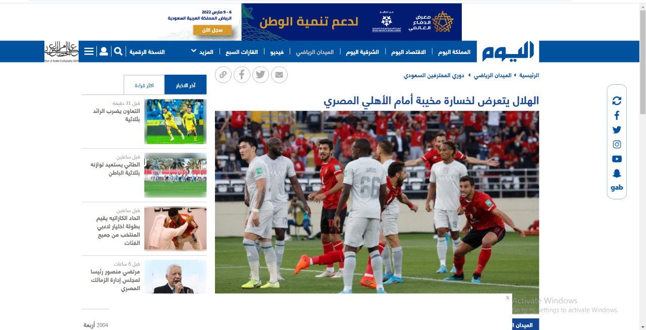 اليوم: الهلال يتعرض لخسارة مخيبة أمام الأهلي المصري
