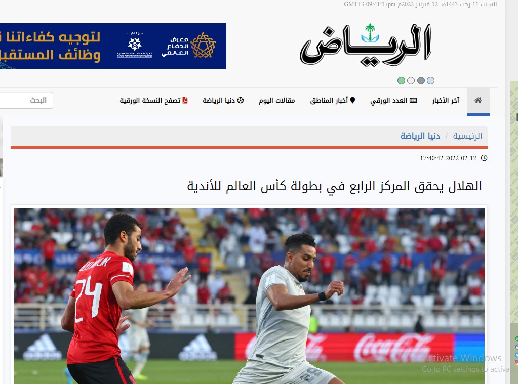 الرياض: الهلال يحقق المركز الرابع في بطولة كأس العالم للأندية