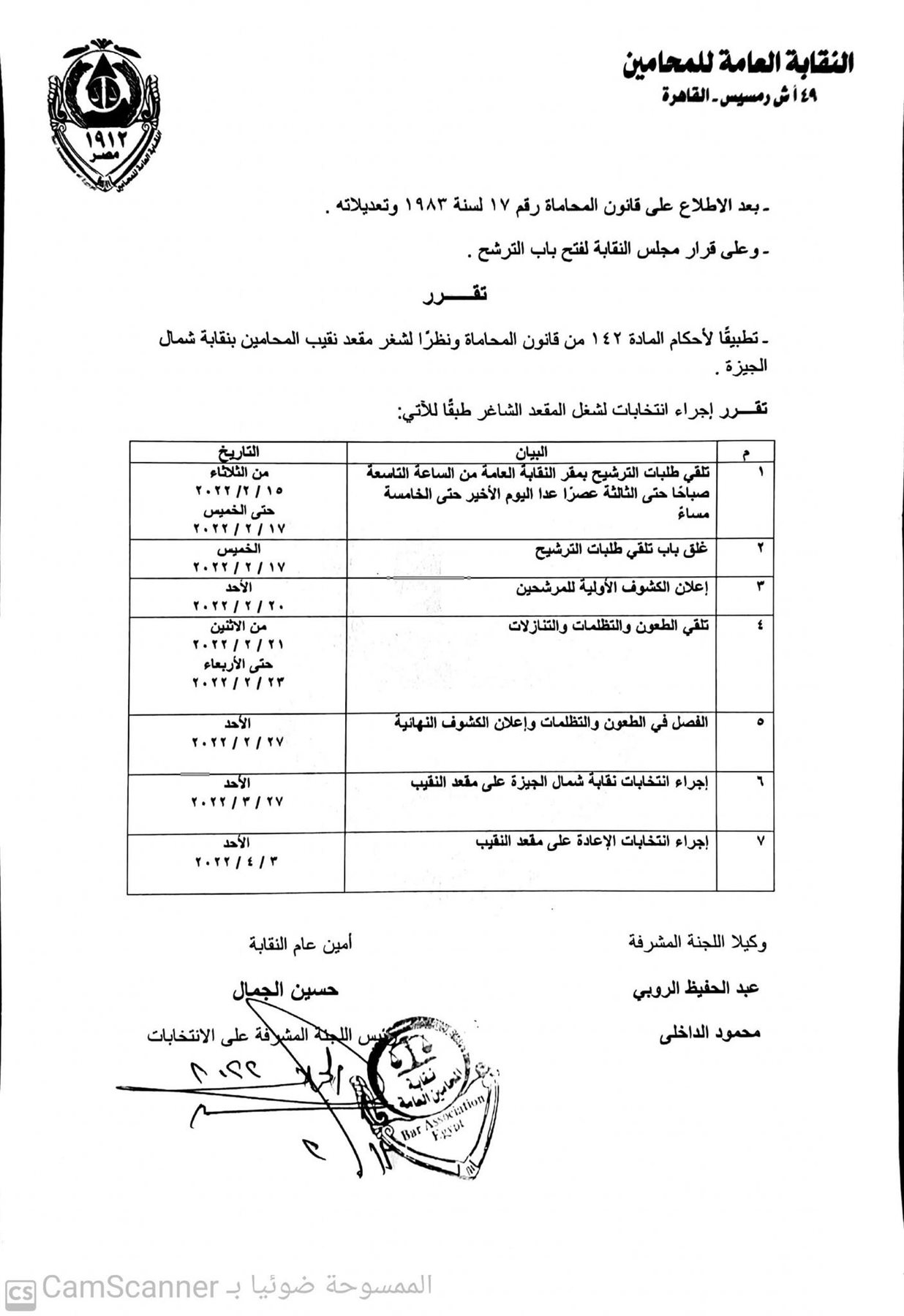 وأوضحت النقابة العامة للمحامين أنه يتم غلق باب تلقي طلبات الترشح في 17 فبراير من الشهر الجاري 2022، على أن يتم إعلان الكشوف الأولية للمرشحين في 20 فبراير 2022.