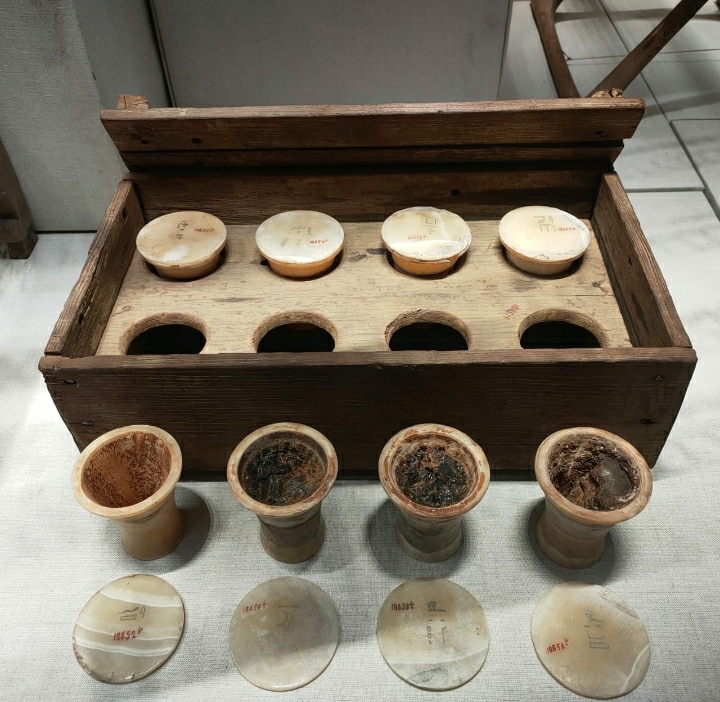 يعرض متحف الإسكندرية القومي صندوق الدهان العطري من عصر الأسرة الـ 19 من الدولة الحديثة، ويحتوي على ثمانية أواني للعطر كتب اسم كل منها علي الغطاء الخارجي للإناء.