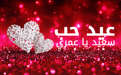 وصورة أخرى من الواجهة الحمراء وبداخلها قلبين باللون الأبيض وعبارة رومانسية تحمل "عيد حب سعيد يا عمري"، ويمكن الاعتماد على صور عيد الحب الأخرى المحتوية على العبارات الرومانسية مع وجود رمزيات بسيطة معبرة عن مناسبة الصورة.