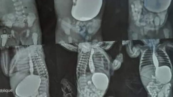 في هذا السياق، حضر طفل عمره 8 أيام وزنه 2.500 كجم يعانى من وجوده كيس خلقي بالأمعاء أدى إلى انسداد والتواء بالأمعاء وحدوث ثقب بالأمعاء، وتم التدخل الجراحي واستئصال الكيس وإعادة توصيل الأمعاء والطفل بحالة جيدة.
