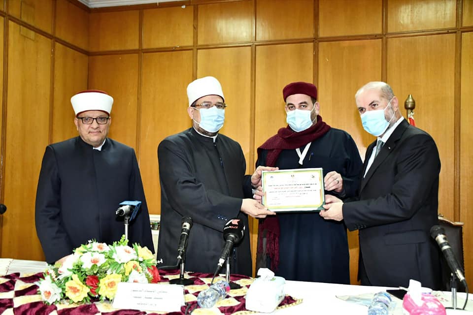 وزير الأوقاف ونظيره الفلسطيني يكرمان الأئمة المشاركين في الدورة المشتركة بـ الأعلى للشئون الإسلامية