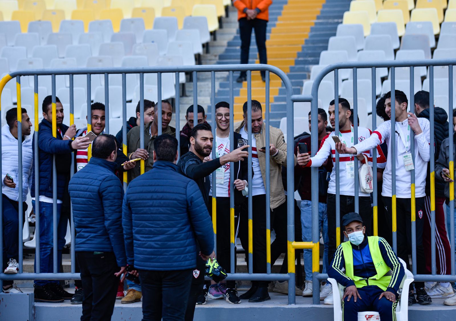 حرص محمد أبو جبل حارس مرمى الفريق الأول لكرة القدم الأول بنادي الزمالك، على التقاط صور سيلفي مع جمهور الزمالك، الموجود في ملعب برج العرب؛ لمواجهة فريق سموحة في الجولة التاسعة من مسابقة الدوري المصري.