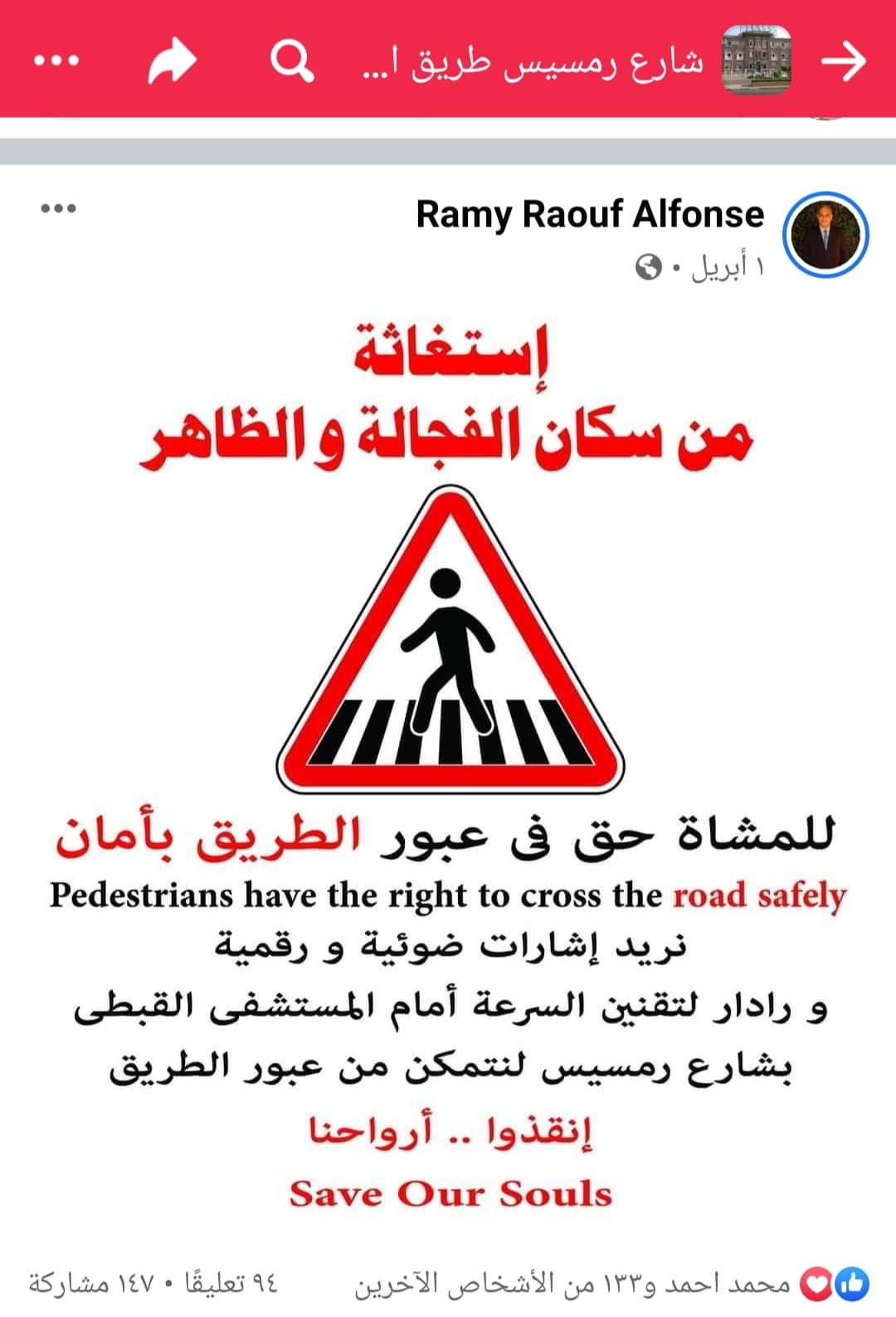 يفتتح اللواء إبراهيم عبدالهادي، نائب محافظ القاهرة مفوضا من اللواء خالد عبدالعال صباح يوم الأحد المقبل في تمام الساعة الحادية عشر صباحًا، ووضع حجر أساس إقامة كوبرى مشاة شارع رمسيس.