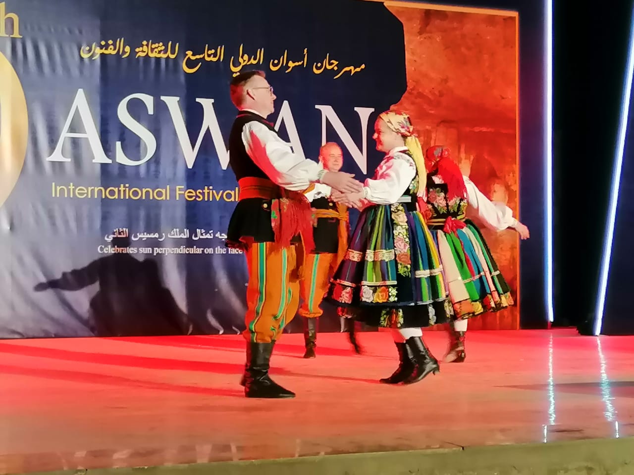 استمرار فعاليات مهرجان أسوان الدولي للثقافة والفنون في دورته التاسعة، والذي تنظمه الهيئة العامة لقصور الثقافة برئاسة المخرج هشام عطوة، بالتعاون مع قطاع العلاقات الثقافية الخارجية، والبيت الفني للفنون الشعبية والاستعراضية، وهيئة التنشيط السياحي، وتنفذه الإدارة المركزية للفنون الشعبية برئاسة الفنان أحمد الشافعي رئيس المهرجان، ومن المقرر ر أن تنتهي فعالياته في 22 فبراير الجاري.