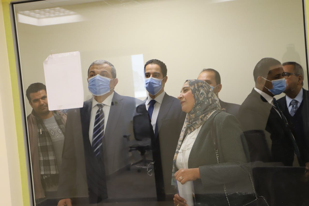 وقام الوزير بتفقد المبنى ومراحل التجهيز والأعمال الإنشائية التي تمت به ومنافذ الدخول والخروج وأماكن تواجد العاملين بالوزارة وتقسيم الإدارات بمقر الوزارة، وما تم تنفيذه بالمبنى من بنية تحتية تكنولوجية.