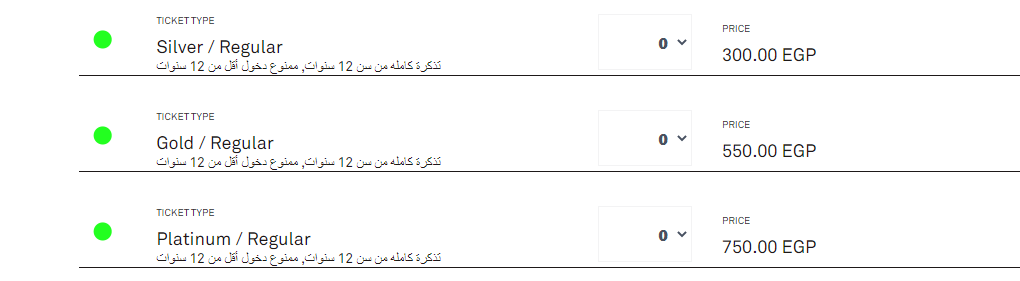 وجاءت أسعار تذاكر الحفل على الموقع المخصص لشراء التذاكر كالتالي:-