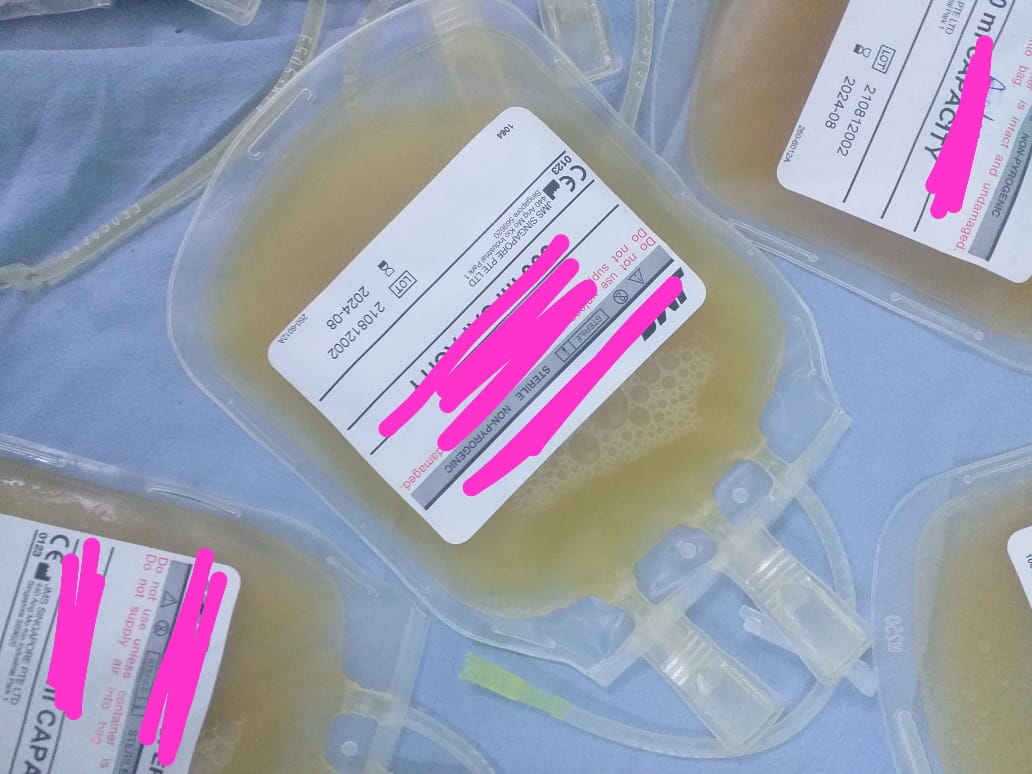 كما تبين وجود أن التحاليل الخاصة بتلك الأكياس مجهولة المصدر، وتداولها يشكل خطرًا علة صحة المرضي وتعد غير صالحة للاستخدام قانونًا.