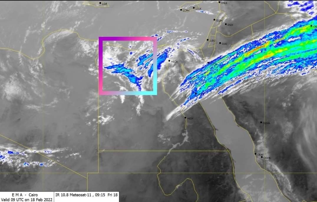 وقالت الهيئة إن الأقمار الصناعية رصدت تكاثر للسحب المتوسطة والمنخفضة على أقصى غرب البلاد والصحراء الغربية يصاحبها سقوط أمطار متفاوتة الشدة.