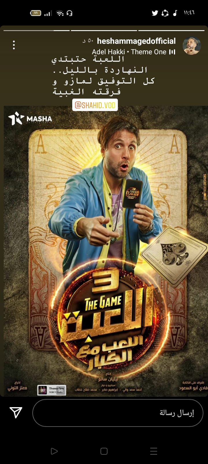 ونشر هشام ماجد استوري ببوستر العمل، عبر حسابه الشخصي بموقع تبادل الصور والفيديوهات انستجرام، معلقًا: اللعبة هتبتدي النهاردة بالليل.. كل التوفيق لمازو وفرقته الغبية.