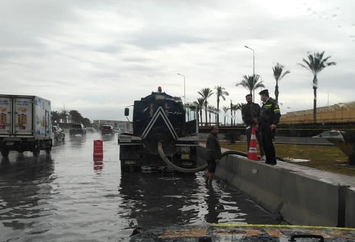كثفت الأجهزة الأمنية، الخدمات المرورية على كل المحاور والطرق في المحافظات التي تعرضت لموجة الطقس السيئ، ونشر سيارات الإغاثة والدفع الرباعي لمساعدة المواطنين من قائدي السيارات الذين تعطلت سياراتهم على الطرق إضافة إلى نشر الأوناش المرورية لرفع أي معوقات مرورية إلى جانب مساهمة قوات الحماية المدنية في إزالة تجمعات المياه.