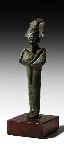 - تمثال إيزيس تحمل حورس، عمود الجد مصنوع من البرونز: