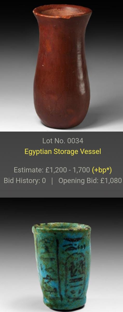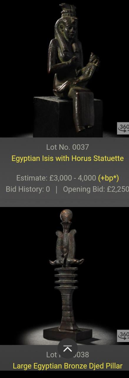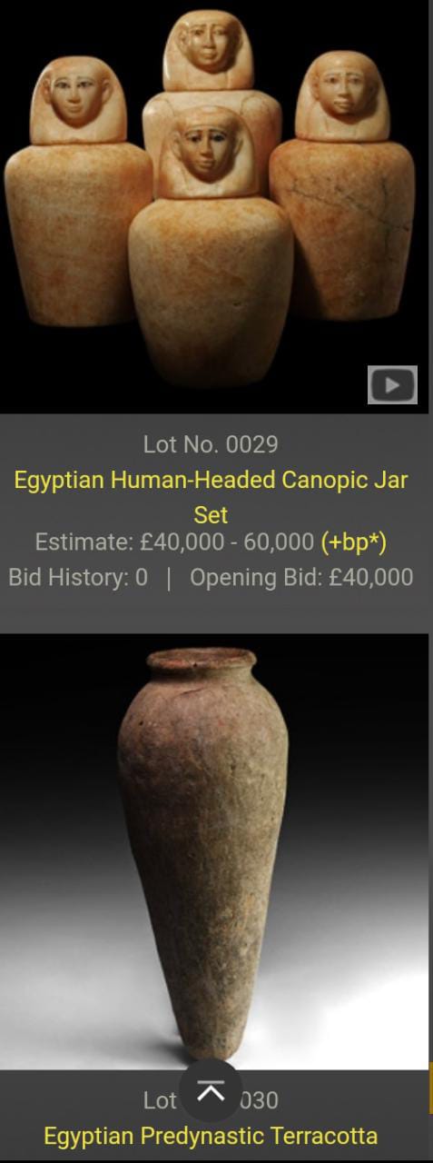 وعرضت صالة المزادات عدة قطع أثرية، كالتالي:
