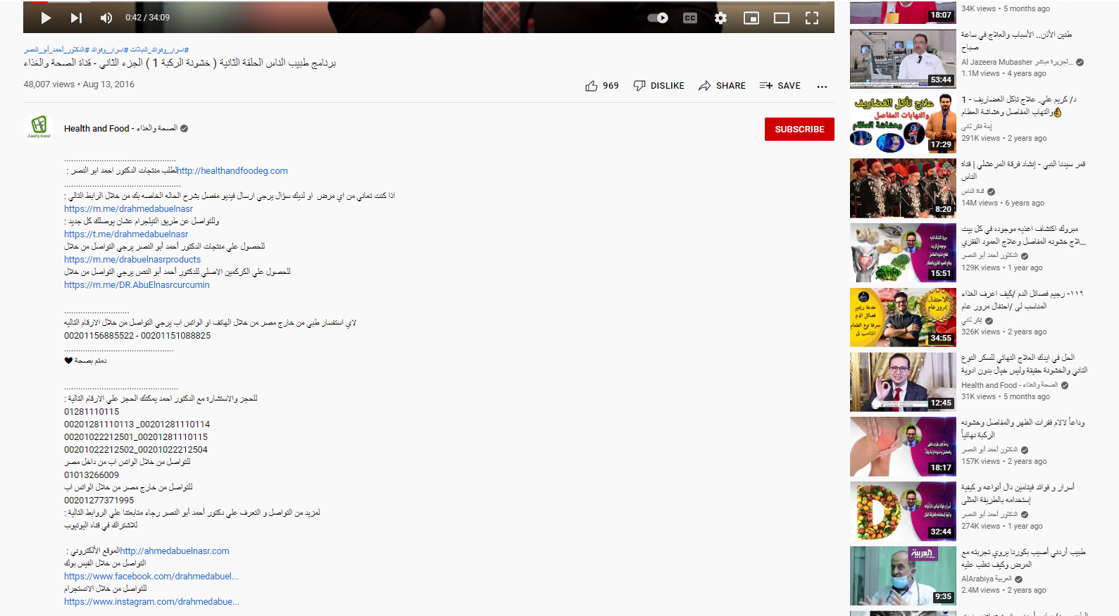 وادعت القناة أن أحمد أبو النصر دكتور مصري معتمد من وزارة الصحة المصرية لعلاج كثير من الأمراض بالمنتجات الطبيعية، وعضو الجمعية الأمريكية للعلاج بمنتجات النحل، ومجموعة أخرى من المعلومات.
