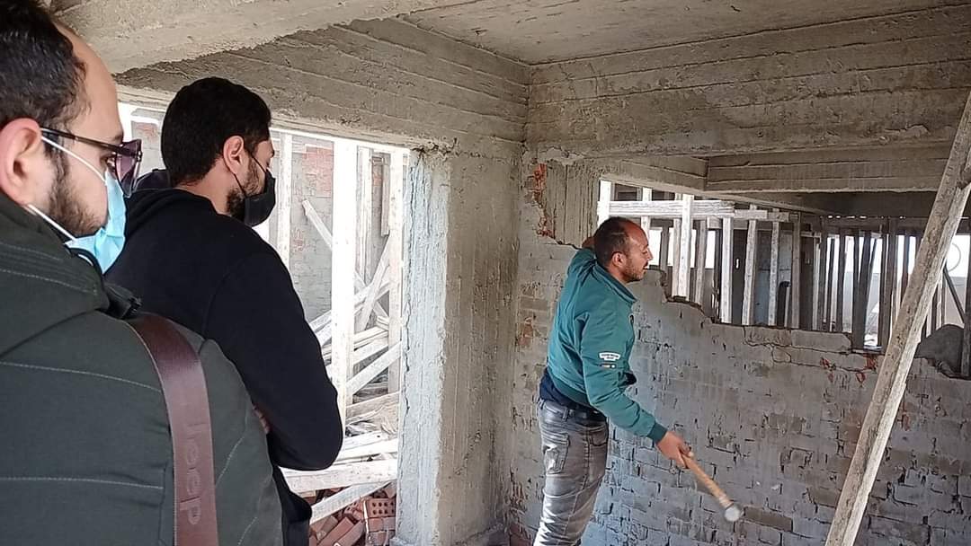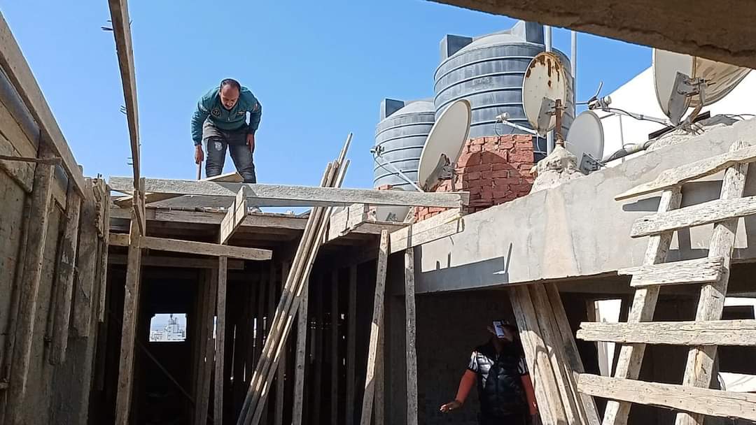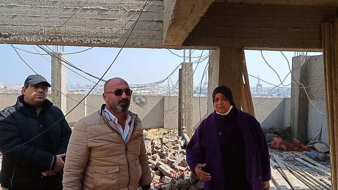 التصدي لمحاولة بناء وحدة سكنية مخالفة أعلى سطح عمارة ببورسعيد | صور