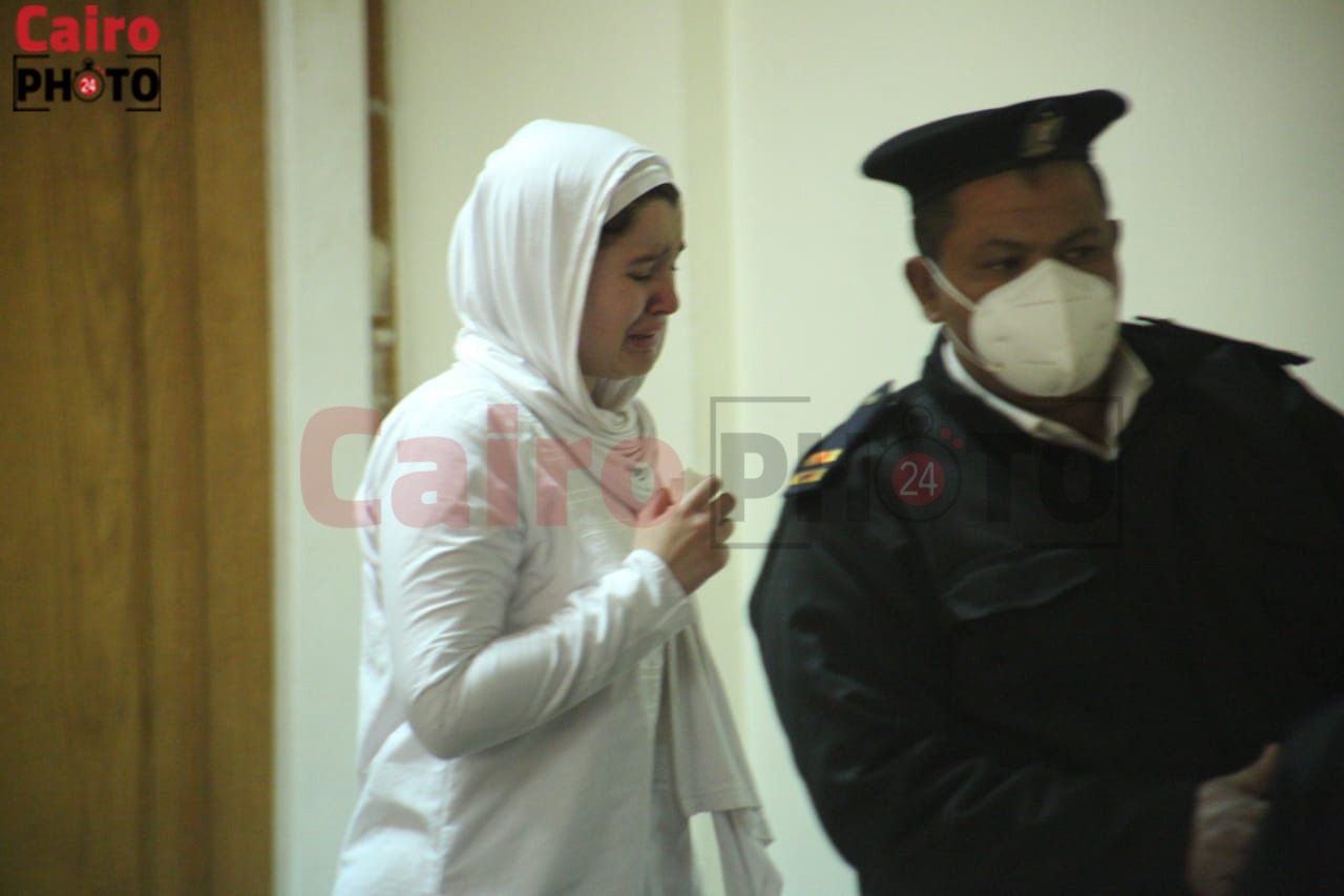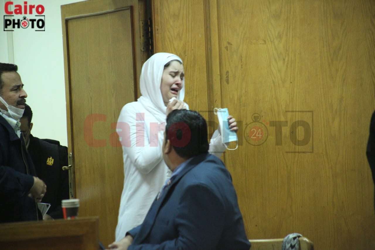 وظلت حنين حسام تردد: يا رب نجيني عشان أمي.. والله ما عملت حاجة.. يا رب معملتش حاجة.. نفسي أروح لأبويا وأمي، كما دخلت أسرتها أيضا وخاصة والدها في نوبة بكاء.
