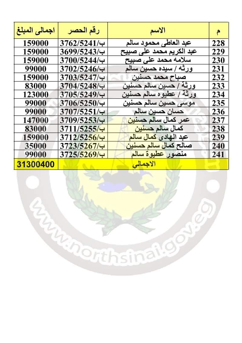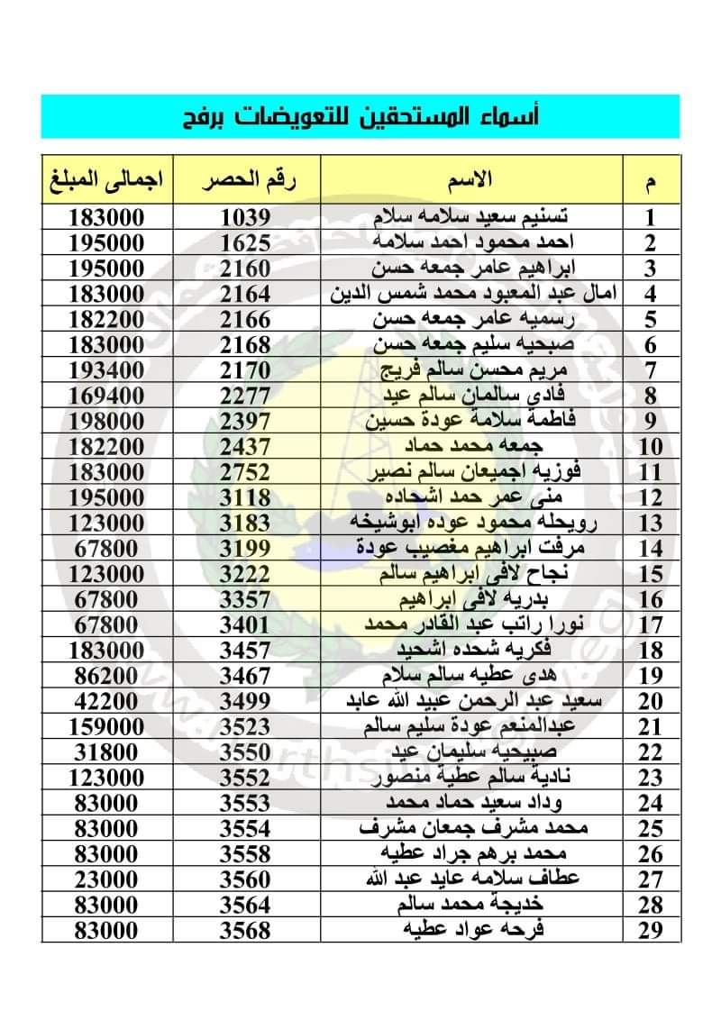 أعلنت محافظة شمال سيناء، أسماء المستحقين للتعويضات بمدينة رفح، وعددهم 241 مواطنا.