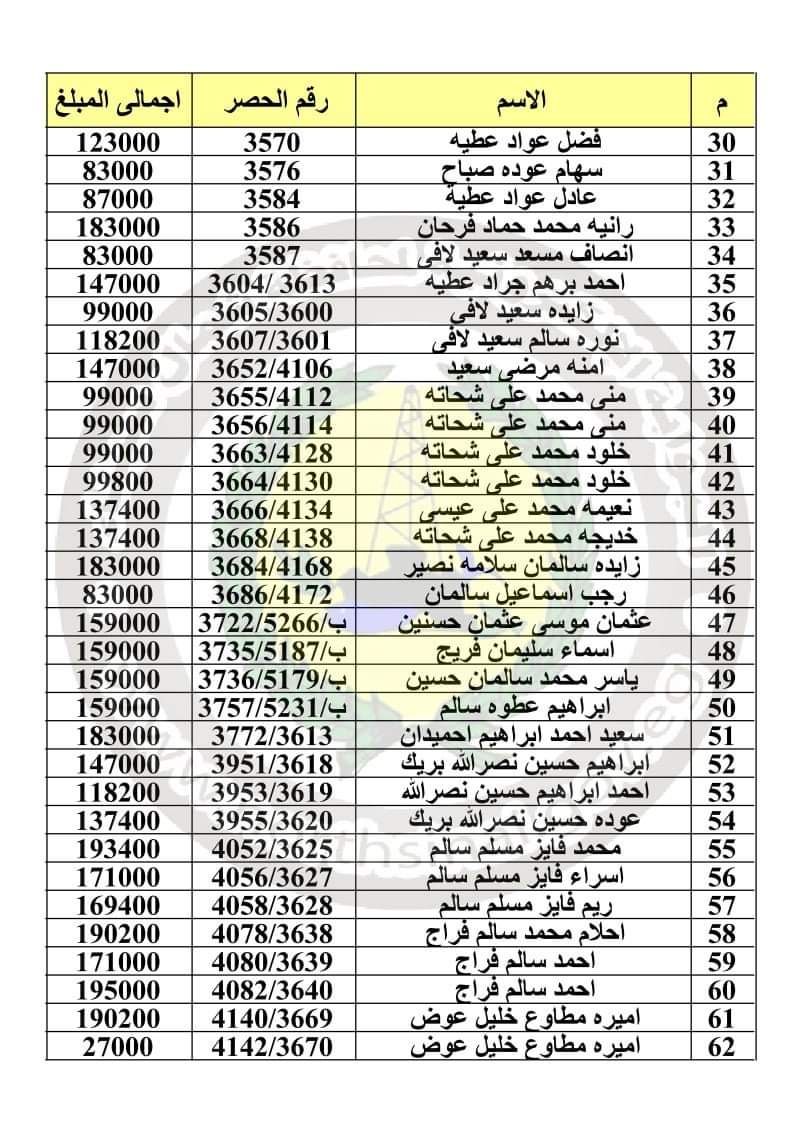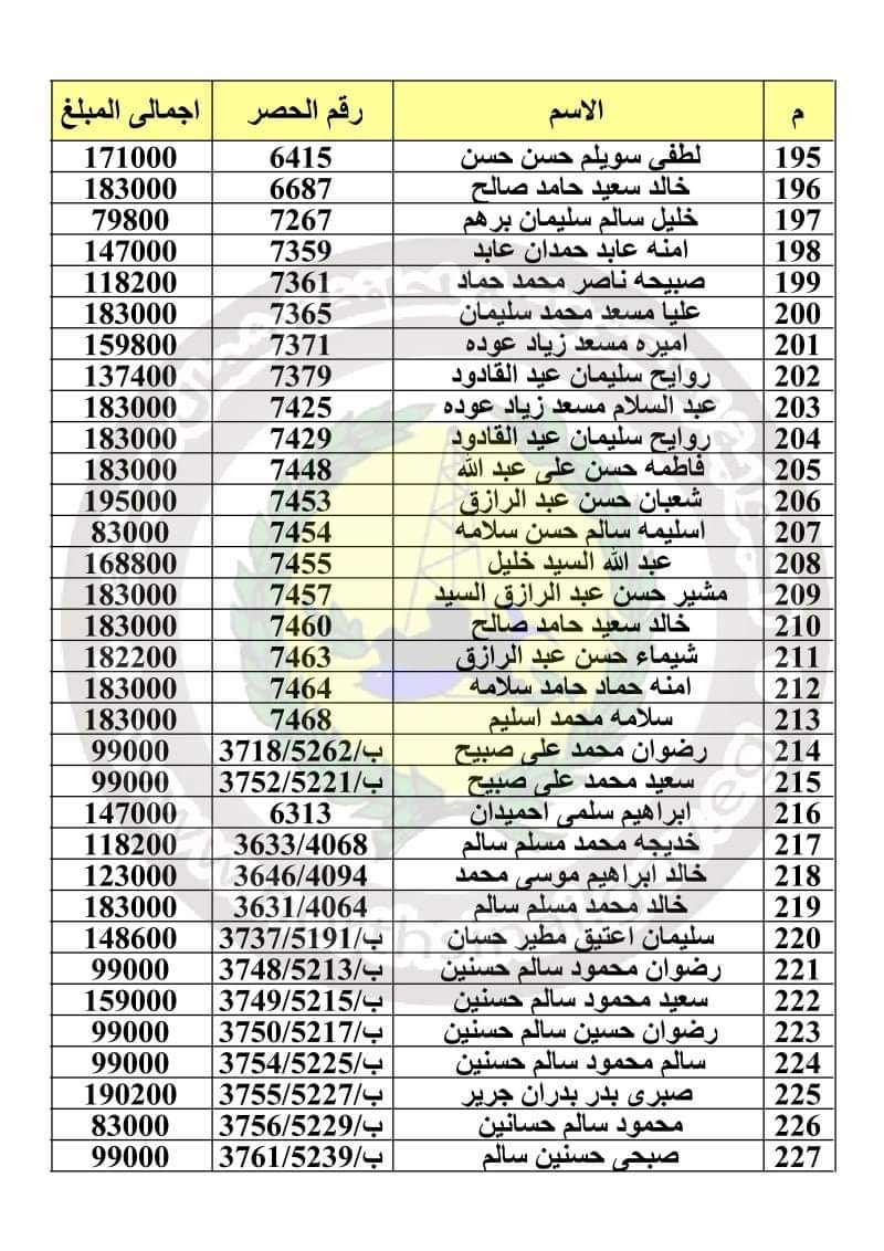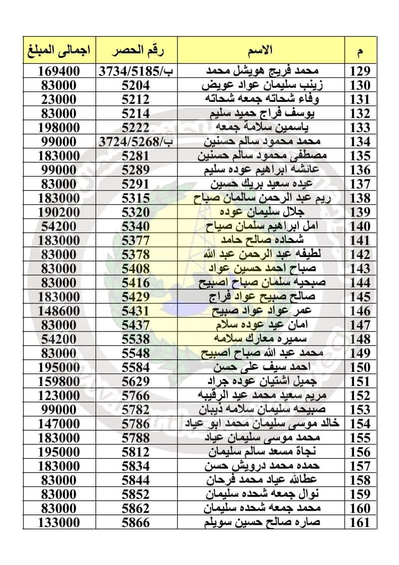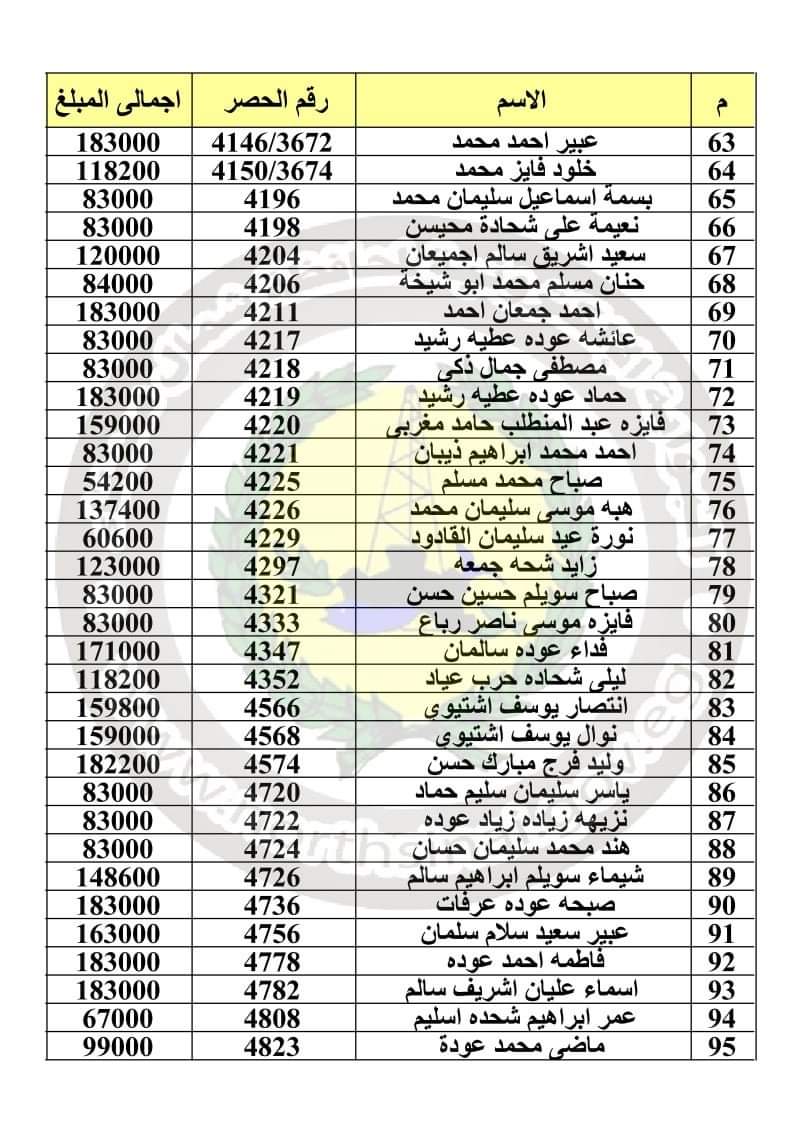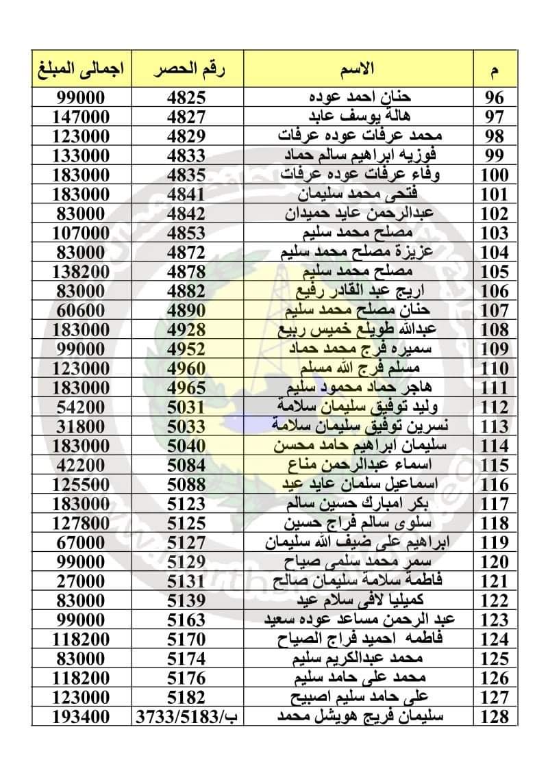 وأعلنت المحافظة أسماء 241 مواطنًا للمستحقين للتعويضات برفح، على أن يتم الصرف من مركز ومدينة رفح يبدأ باسم تسنيم سعيد سلامة سلام، وينتهي باسم منصور عيوه سالم.